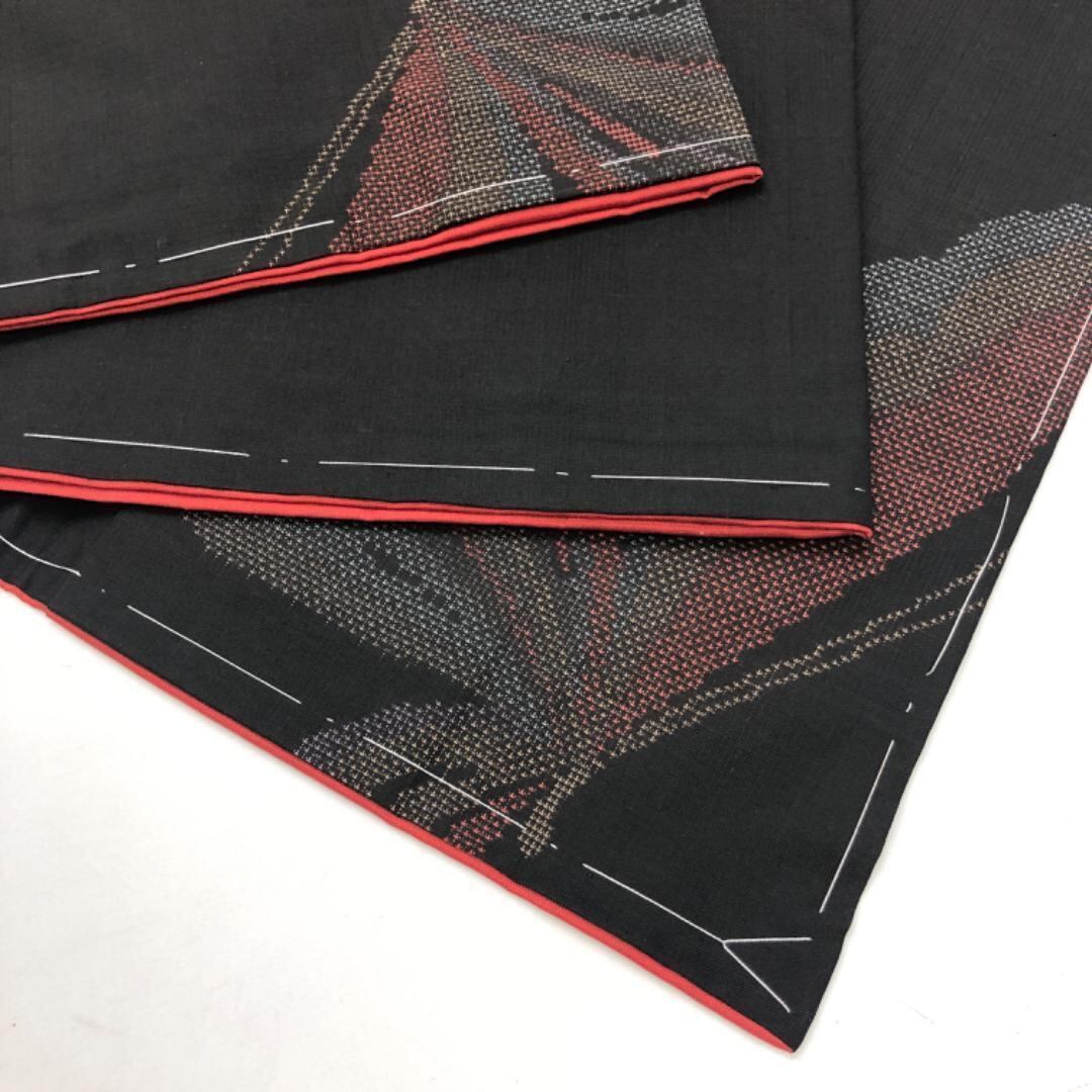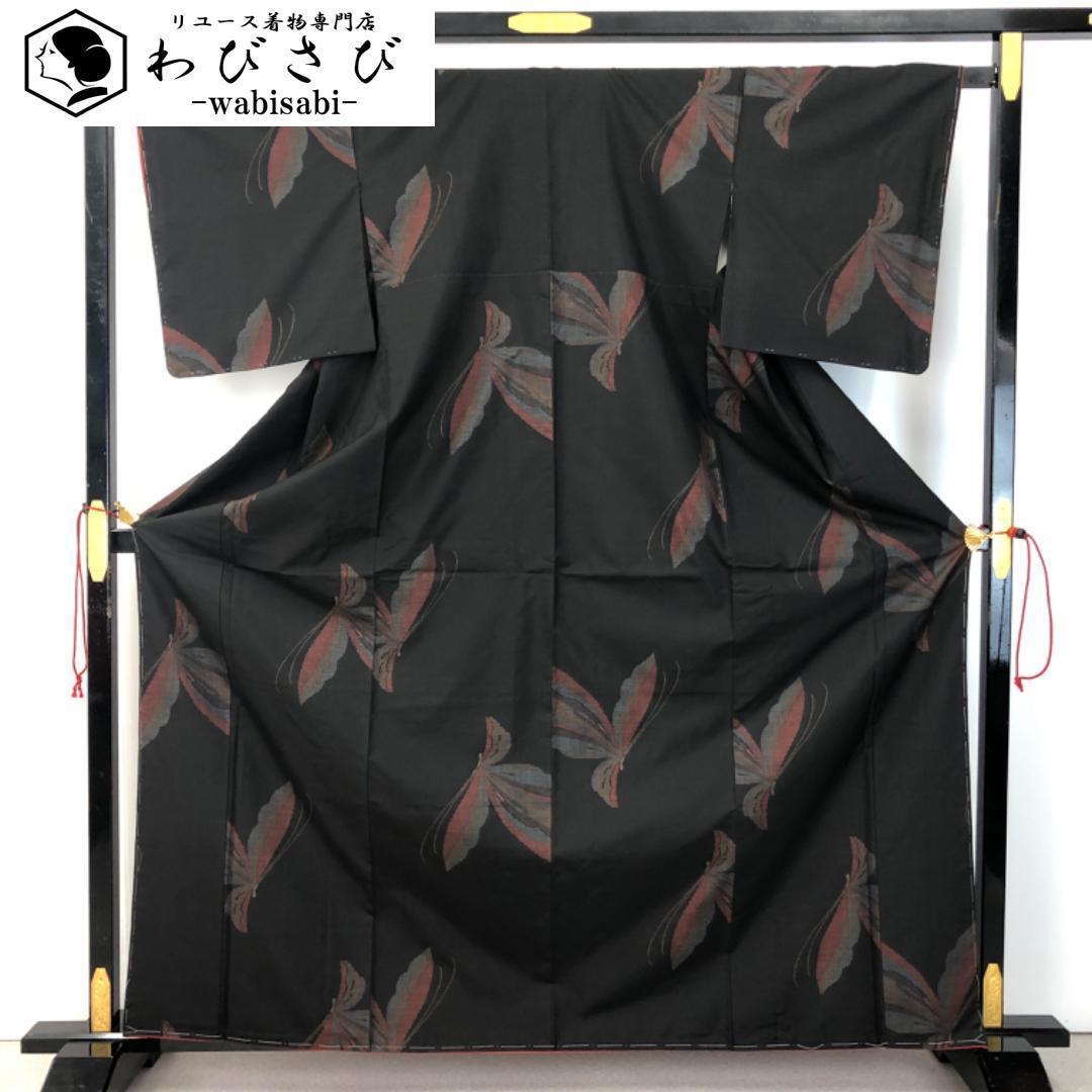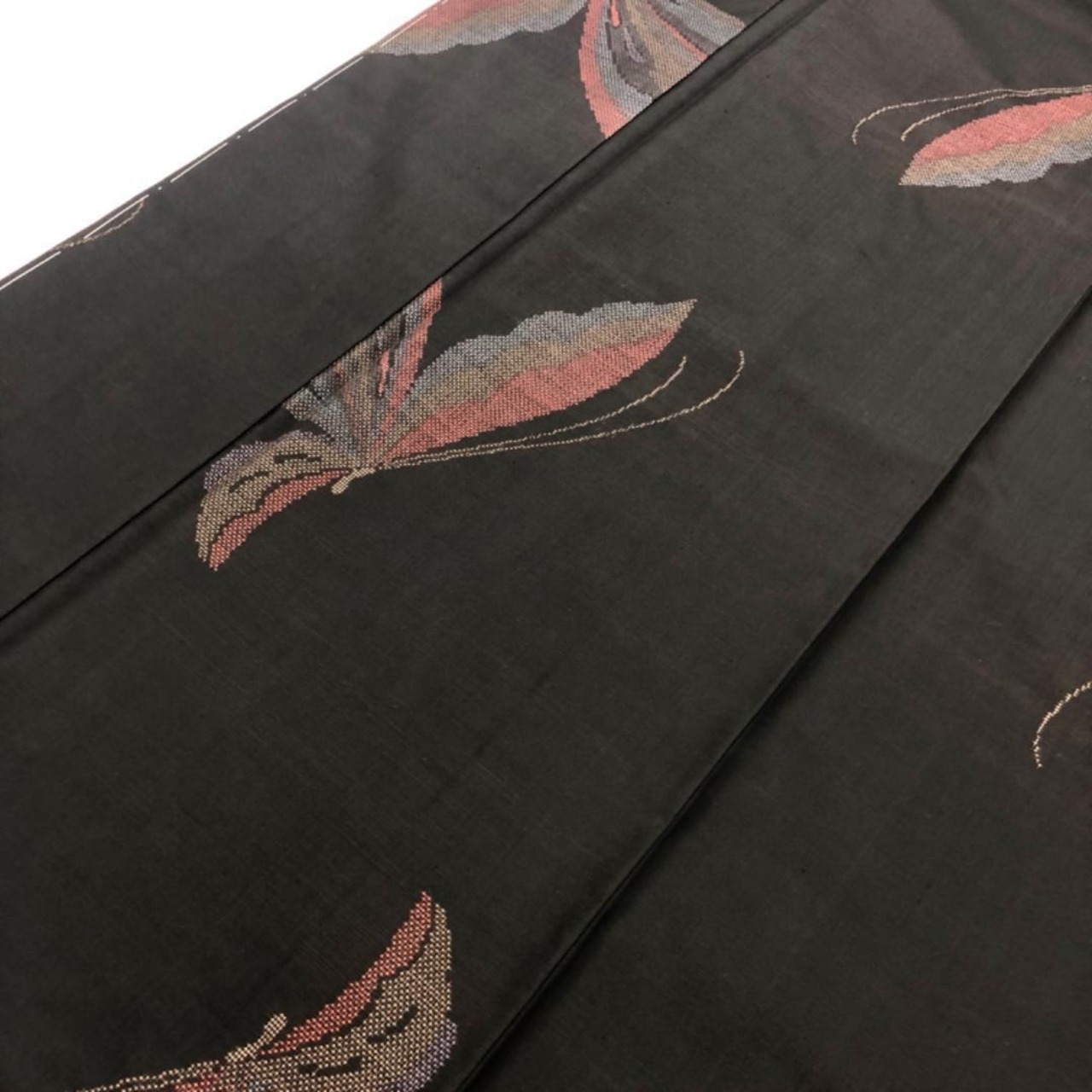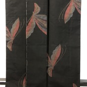 黒色ベースのお色味に蝶々の柄裄がデザインされた素敵なお品でございます。