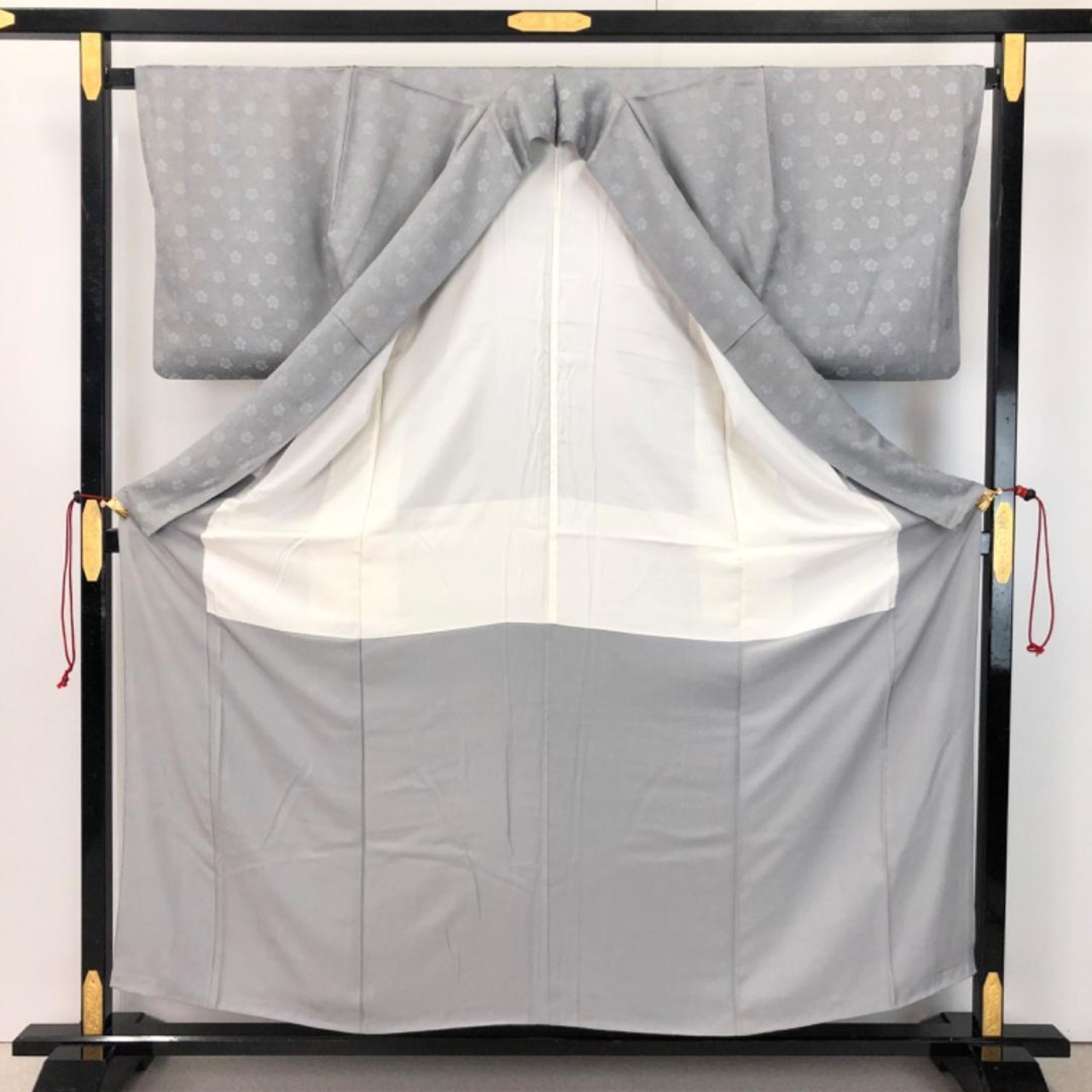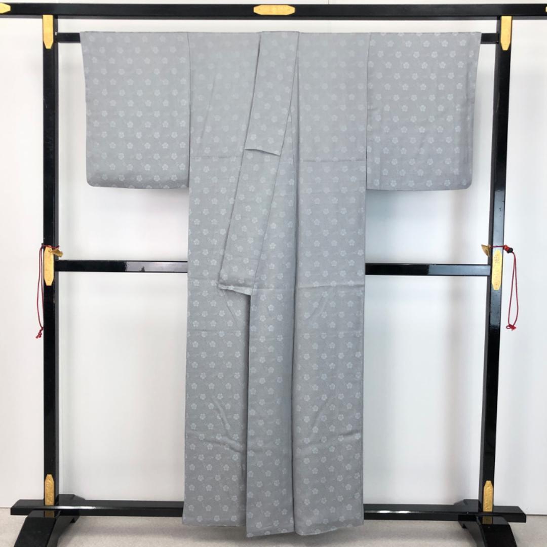 錫色の上品なお色味に花柄地模様の柄裄がデザインされた素敵なお品でございます。