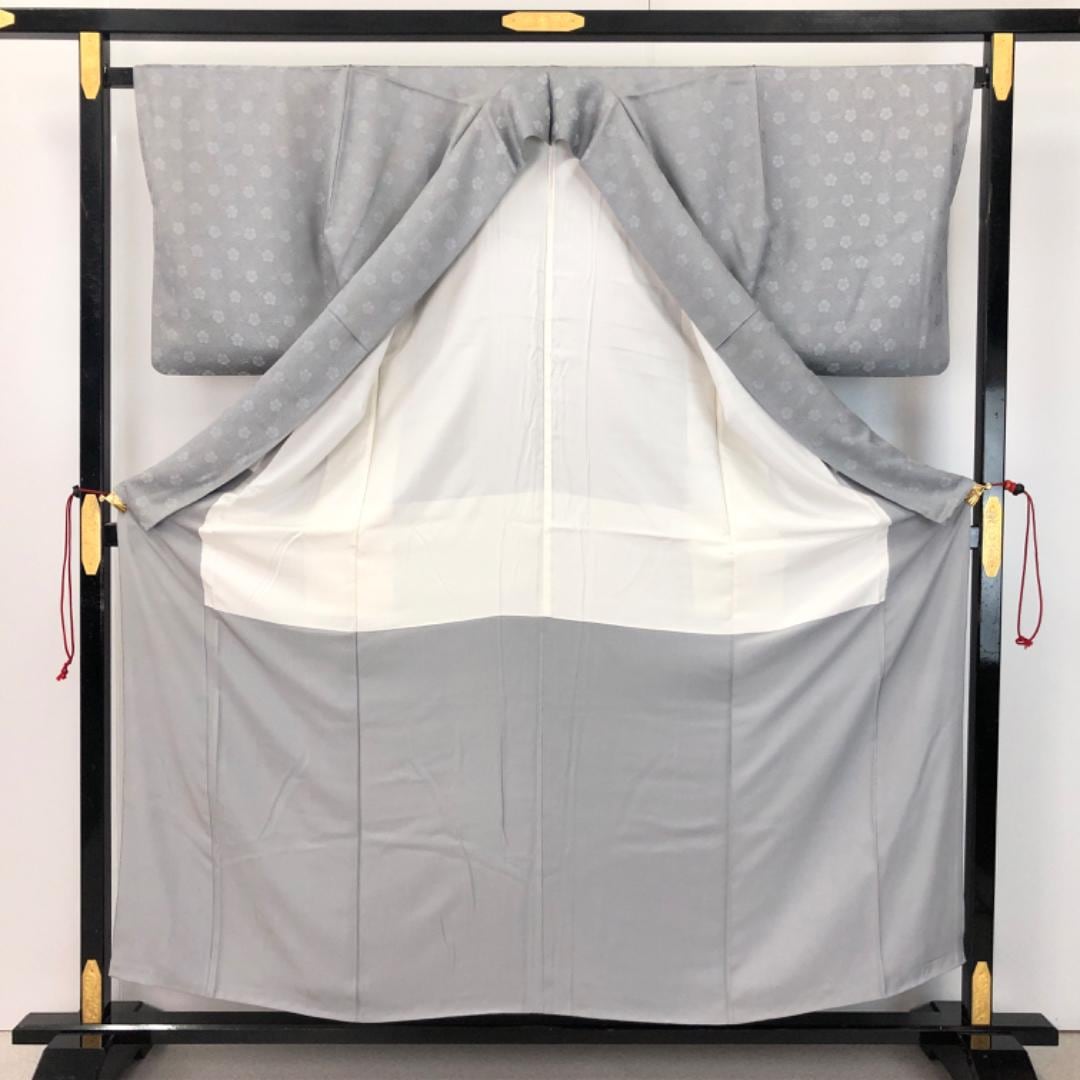 色無地 錫色 花柄地模様 K-4754 着物 きもの kimono 和服 和装 中古 リサイクル着物 【送料無料】