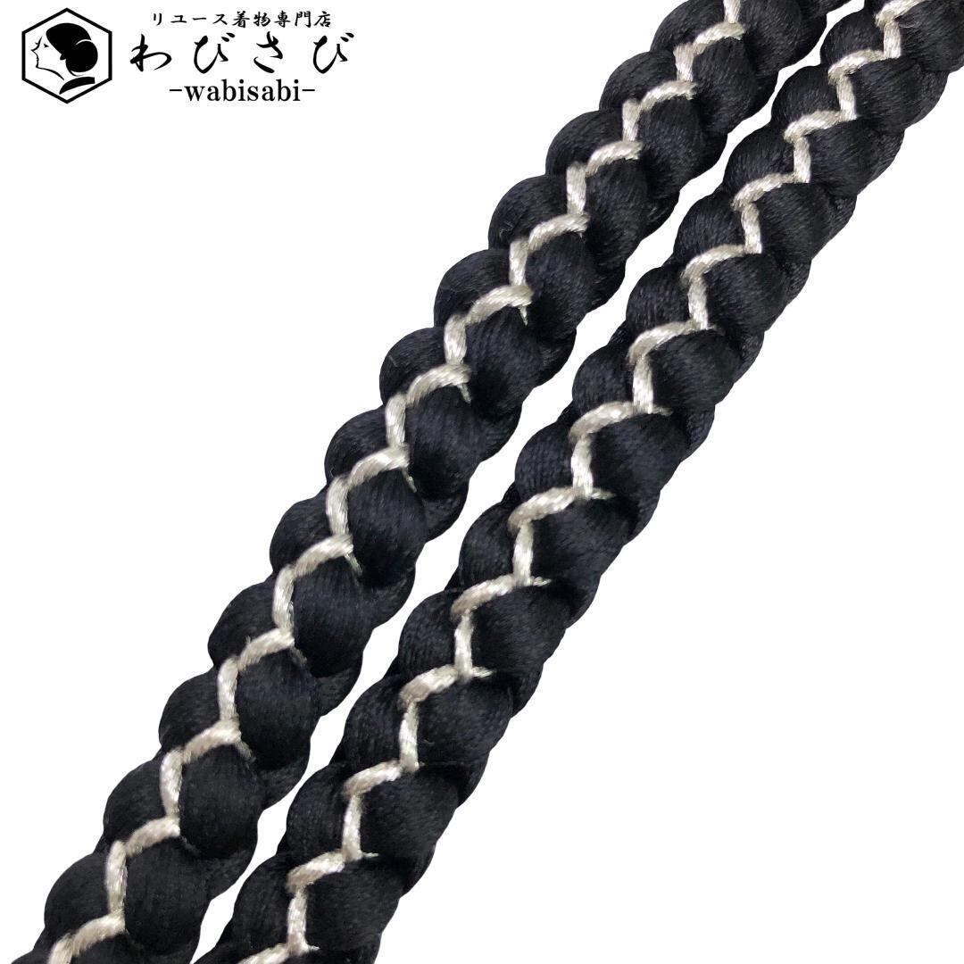 和装小物 帯締め 正絹 丸組紐 組紐 黒色 銀糸 C-5875 着物 きもの kimono 和服 和装 中古 リサイクル着物 【送料無料】