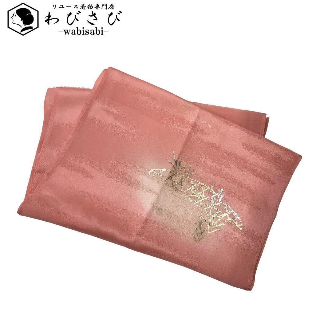 和装小物 帯揚げ 正絹 綸子 流水に草花 薄紅色 金彩 C-5894 着物 きもの kimono 和服 和装 中古 リサイクル着物 【送料無料】