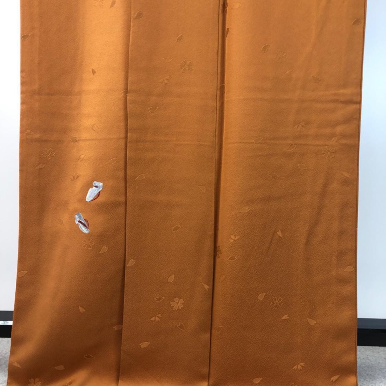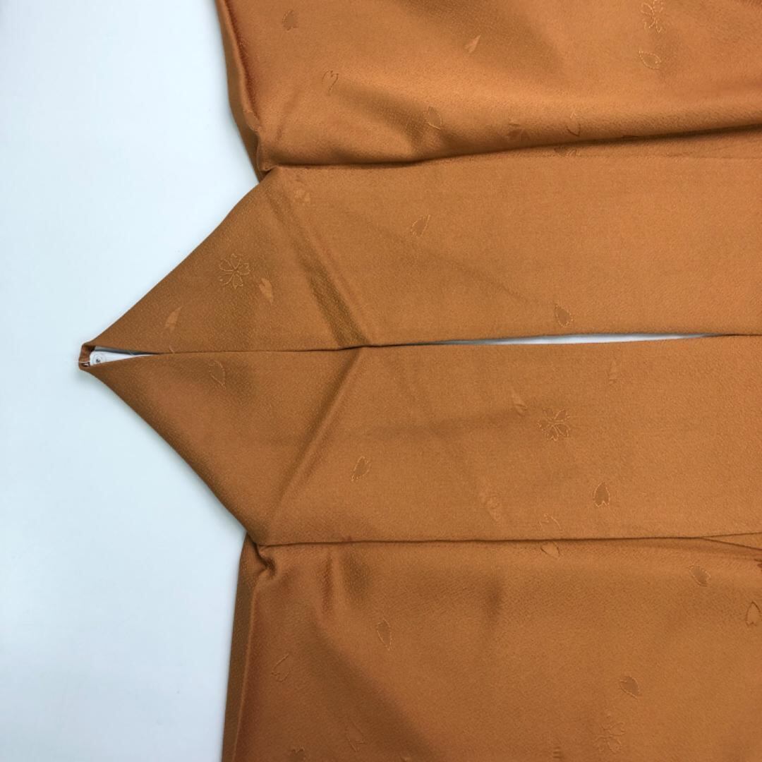 宝茶色の落ち着きのあるお色味、桜の花の地模様、ポイント刺繍の草履、刺繍の洒落紋がデザインされた素敵なお品でございます。
