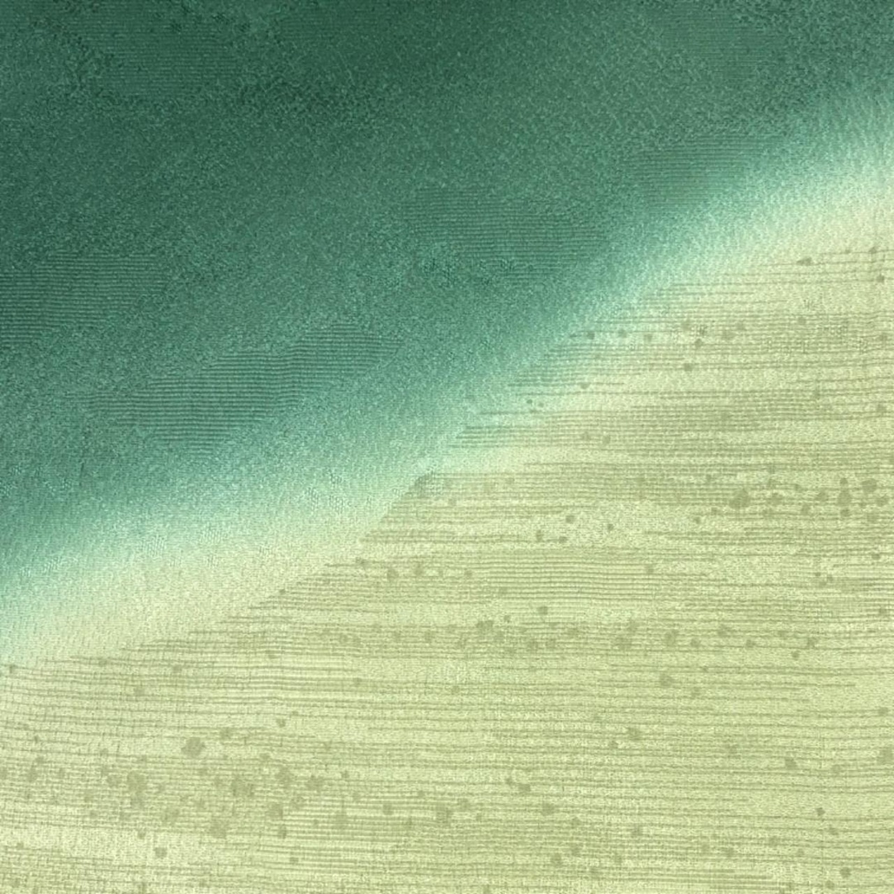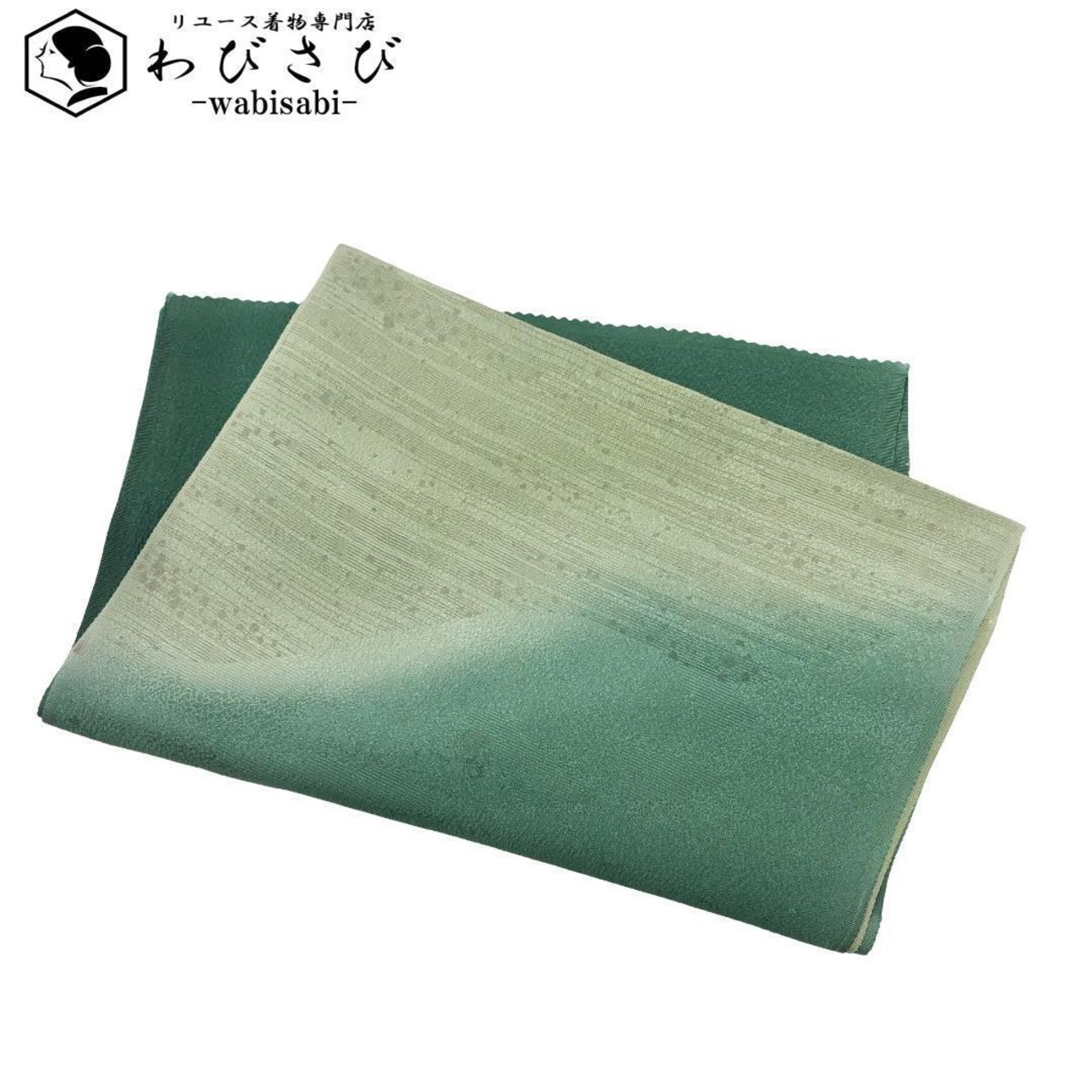 萌葱色のお色味に曲線暈し模様の柄裄がデザインされた素敵なお品でございます。