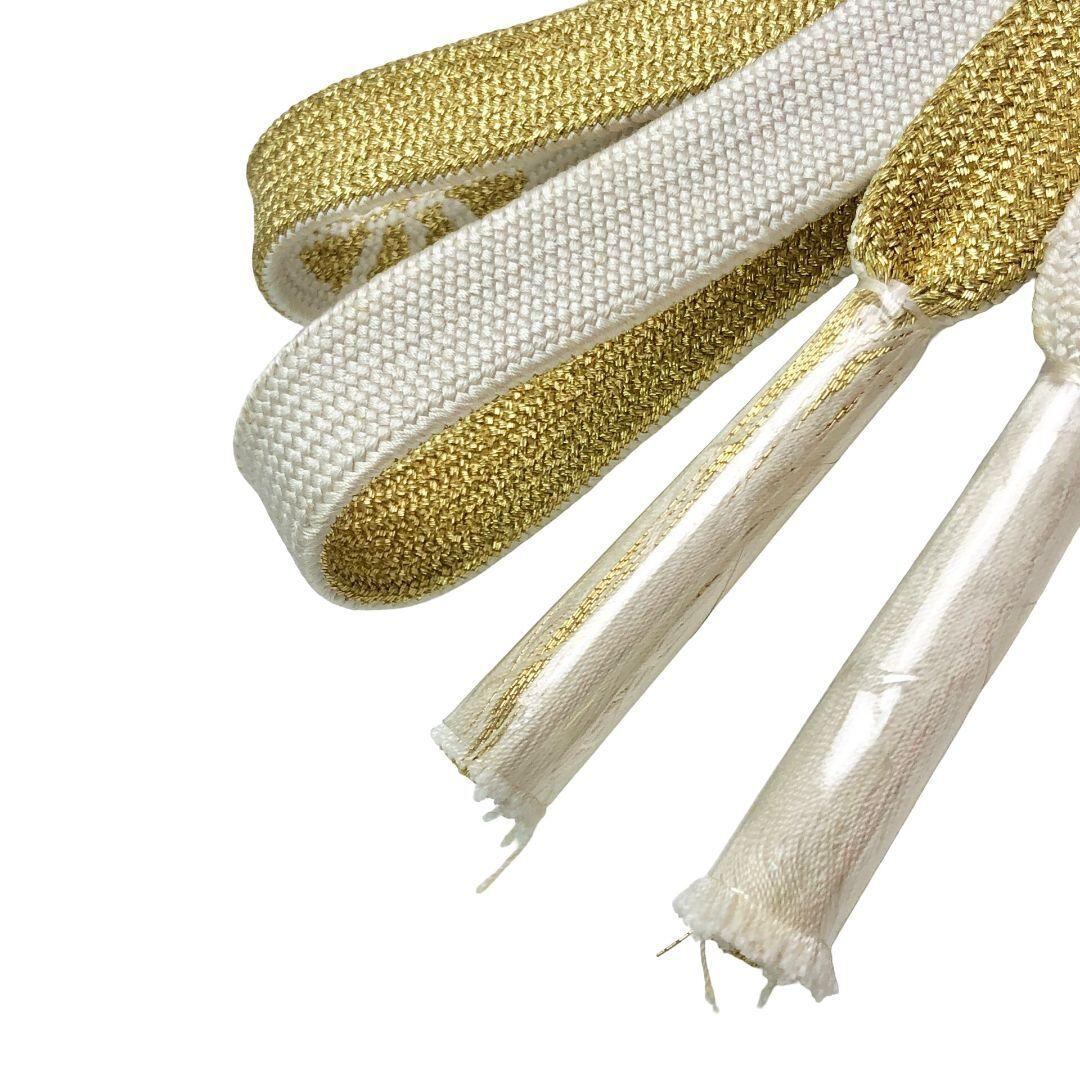 和装小物 帯締め 正絹 高麗組 平組紐 組紐 花模様 乳白色 金糸 C-5878 着物 きもの kimono 和服 和装 中古 リサイクル着物 【送料無料】