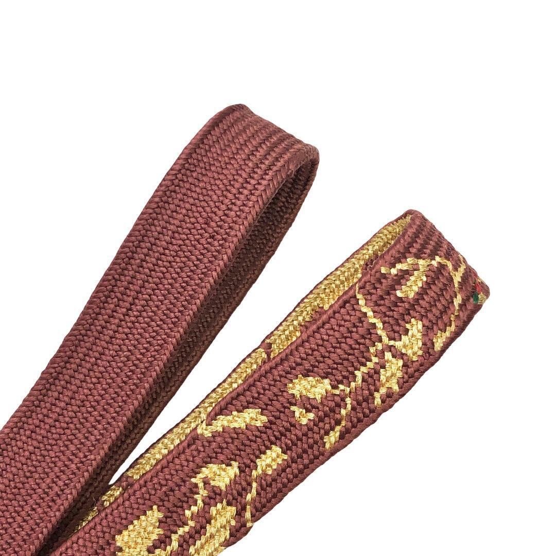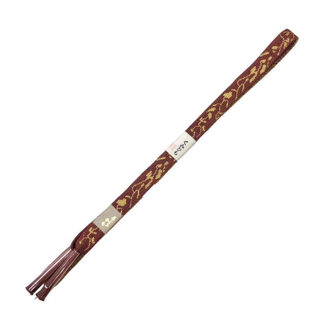 深緋色のお色味に抽象模様の柄裄がデザインされた高麗組の素敵なお品でございます。