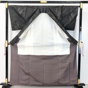 茶泥染の雰囲気の良いお色味に美しい乱菊の花模様がデザインされた素敵な柄裄のお品でございます。