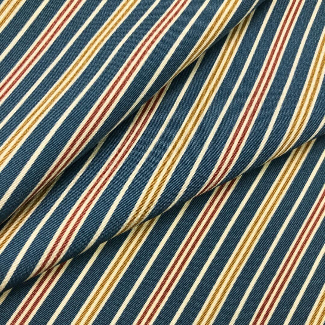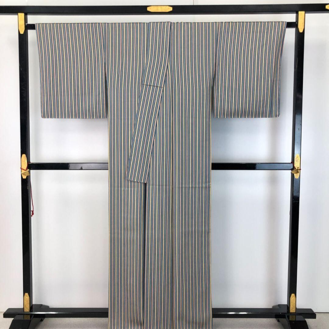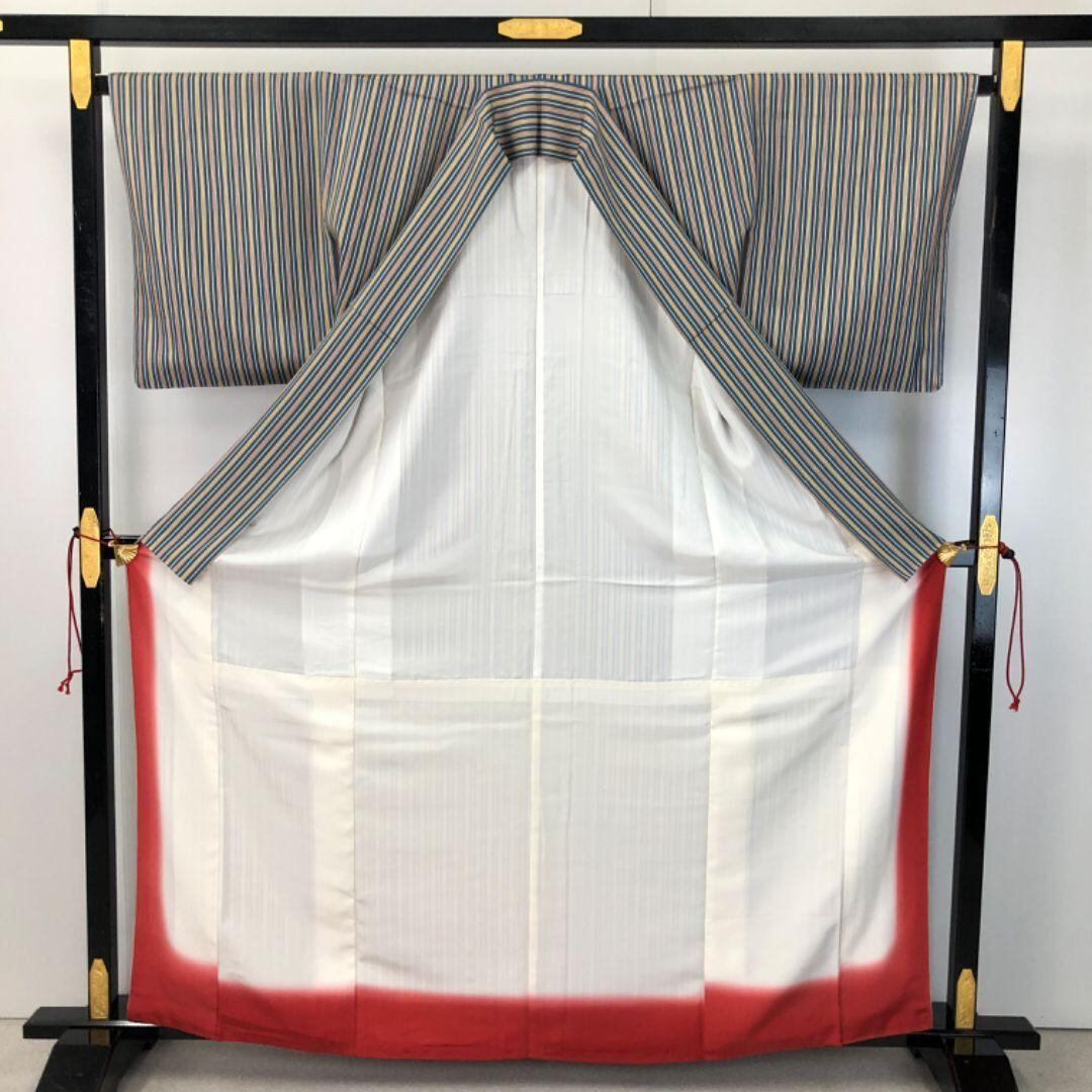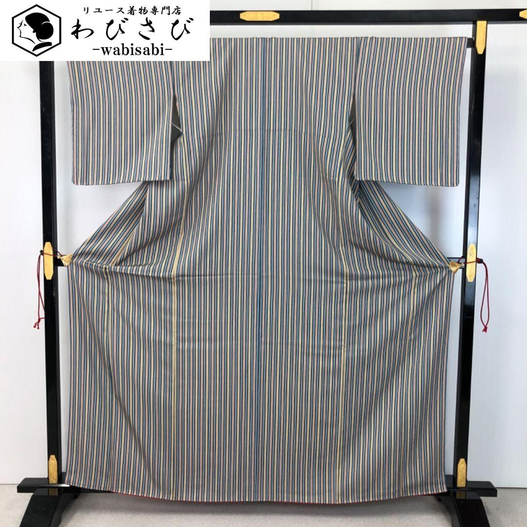 熨斗目花色ベースのお色味の縮緬に縦縞模様の柄裄がデザインされた素敵なお品でございます。