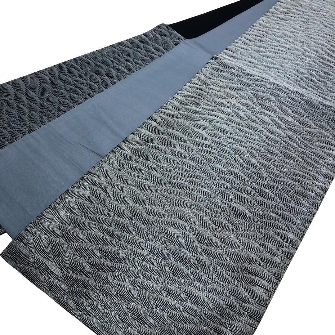 湊鼠色のお色味、美しい波模様の織柄がデザインされた素敵なお品でございます。