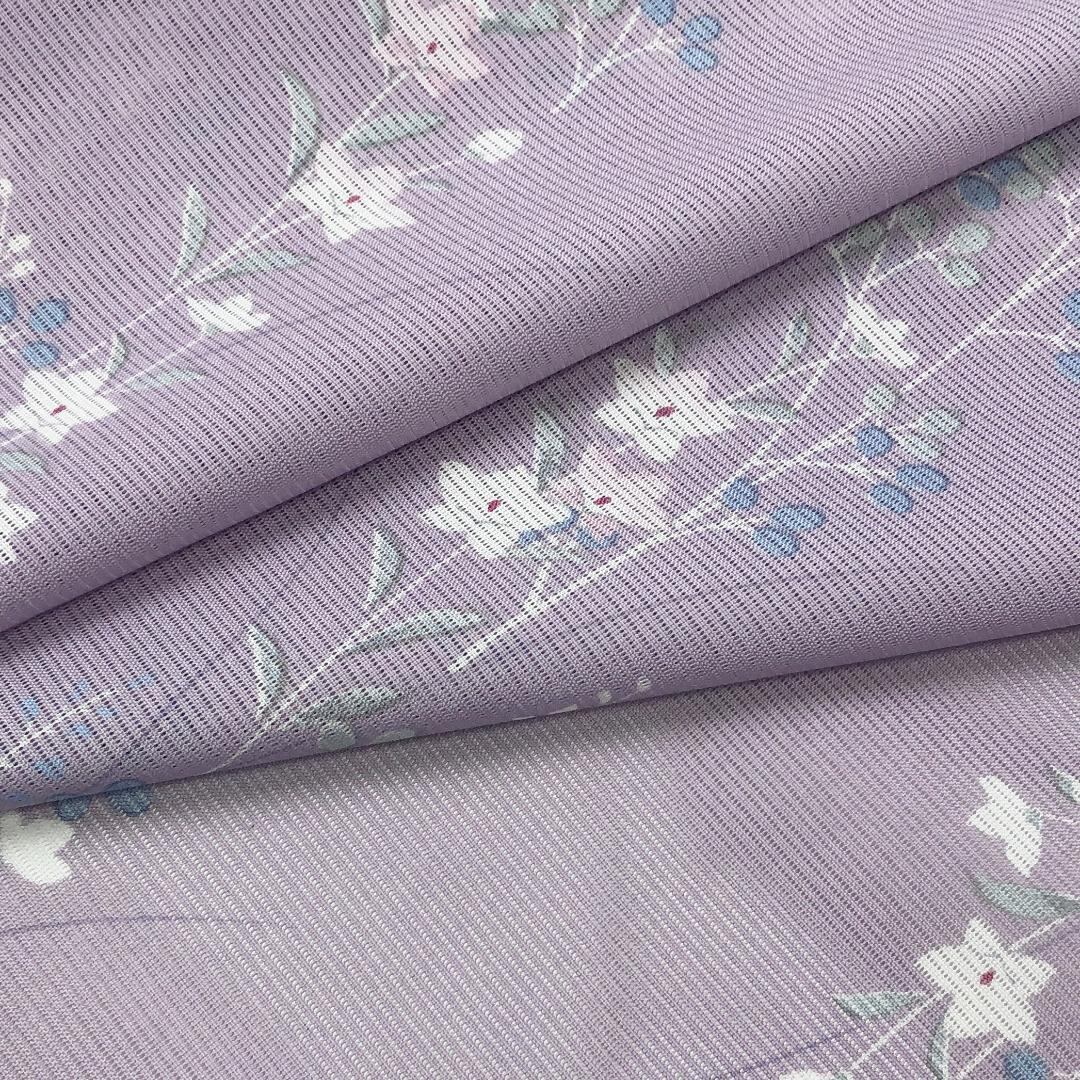 淡紫色の淡く上品なお色味に縦柄の花模様がデザインされた素敵なお品でございます。