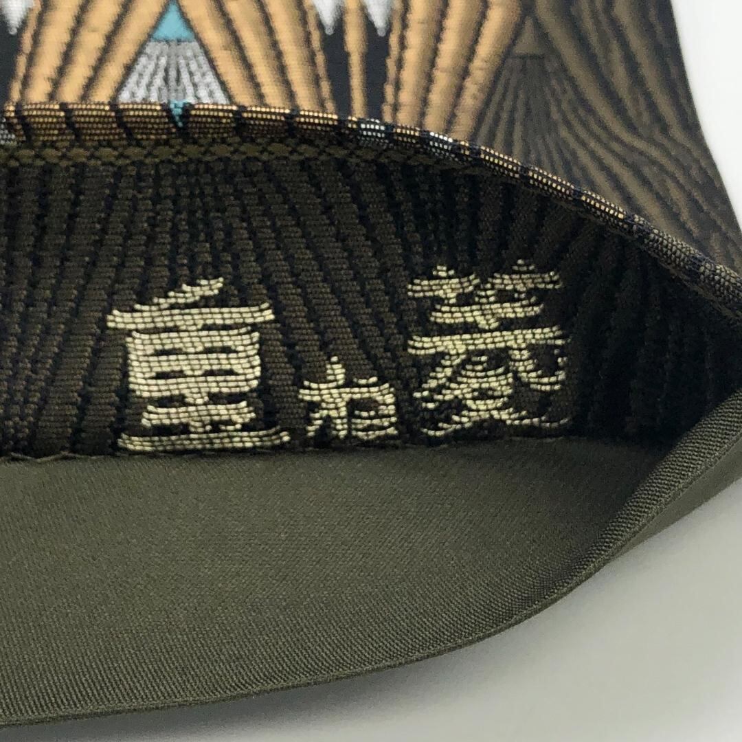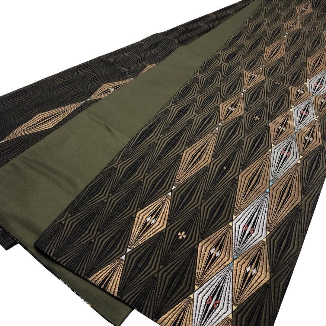 黒色のお色味に金銀糸が使われた縦柄の重ね菱模様のモダンな柄行がデザインされた素敵なお品でございます。