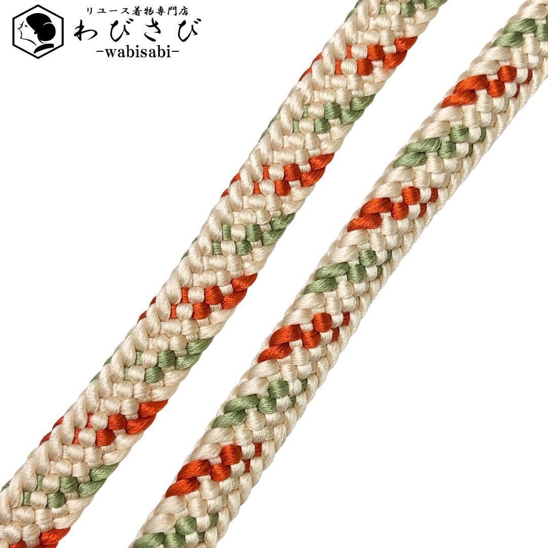生成色のお色味にカラフルな斜線の柄裄がデザインされた素敵なお品でございます。