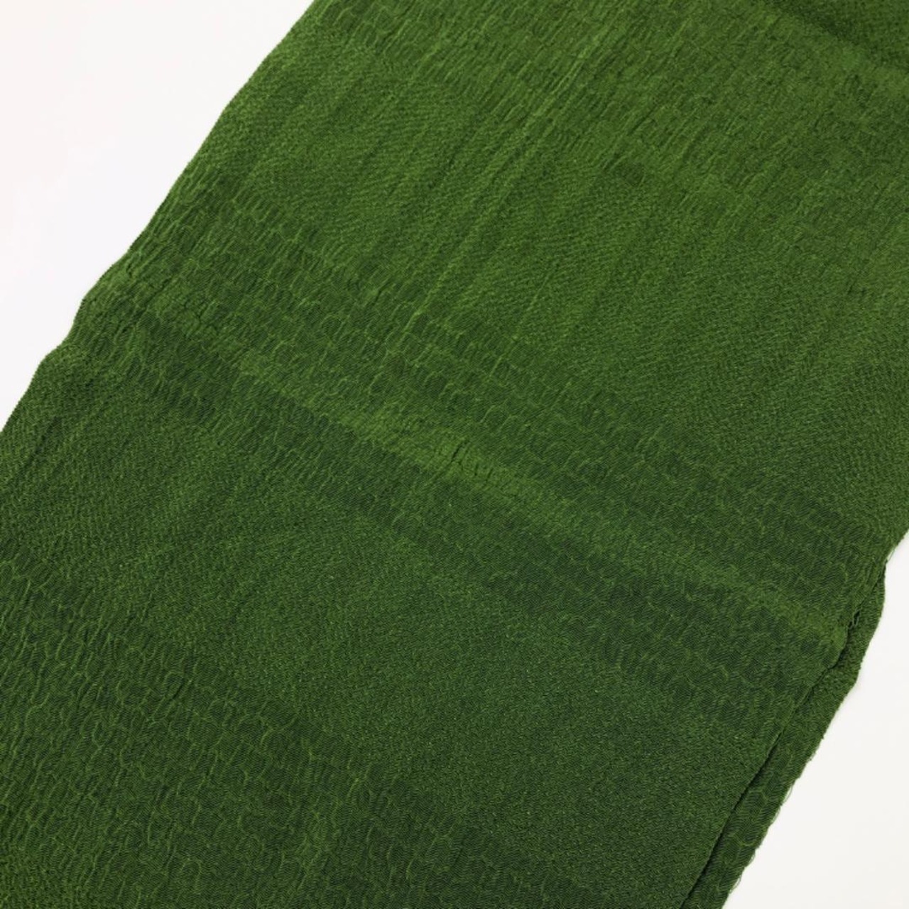 葉緑色のお色味に縮緬の素敵なお品でございます。