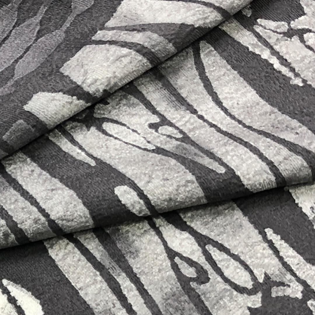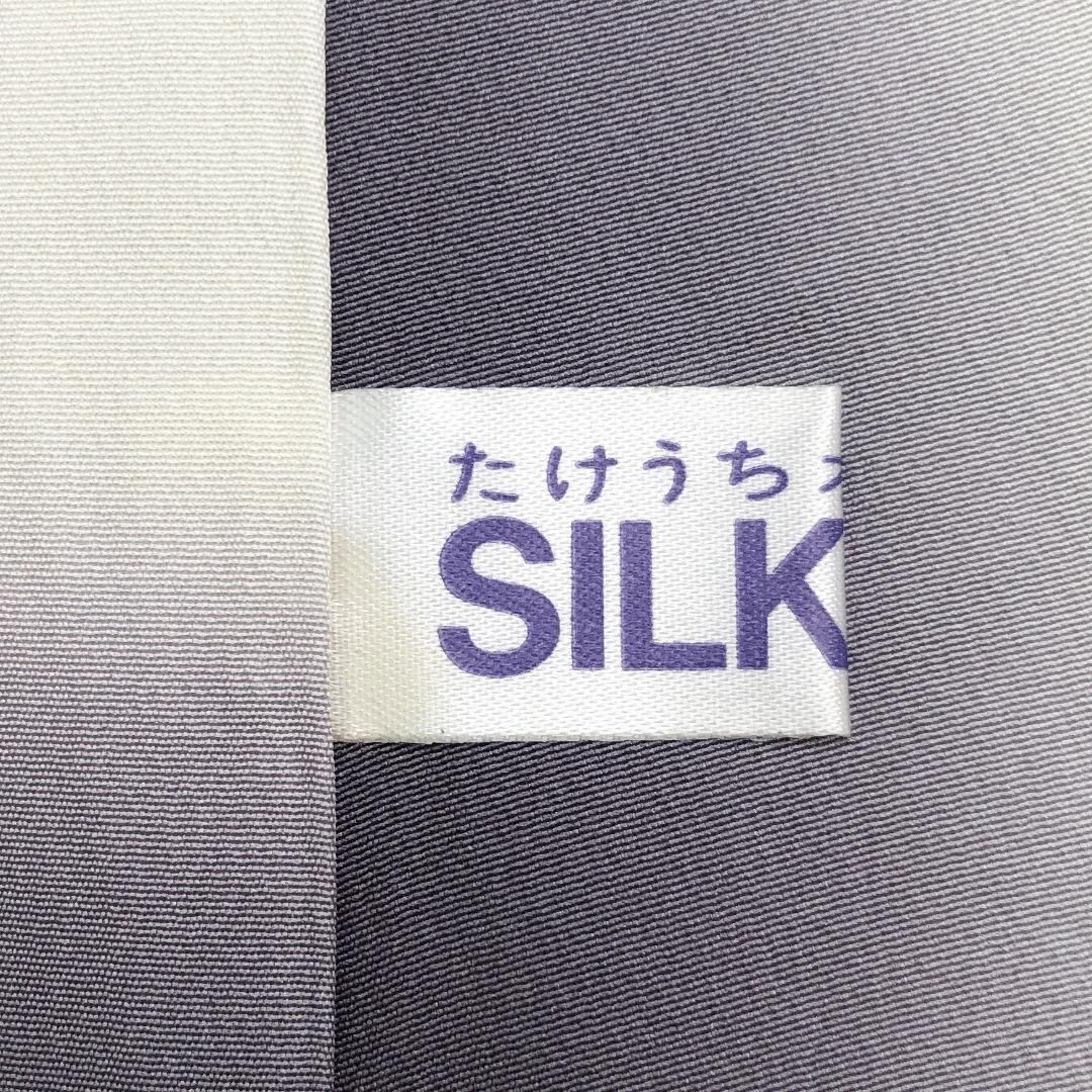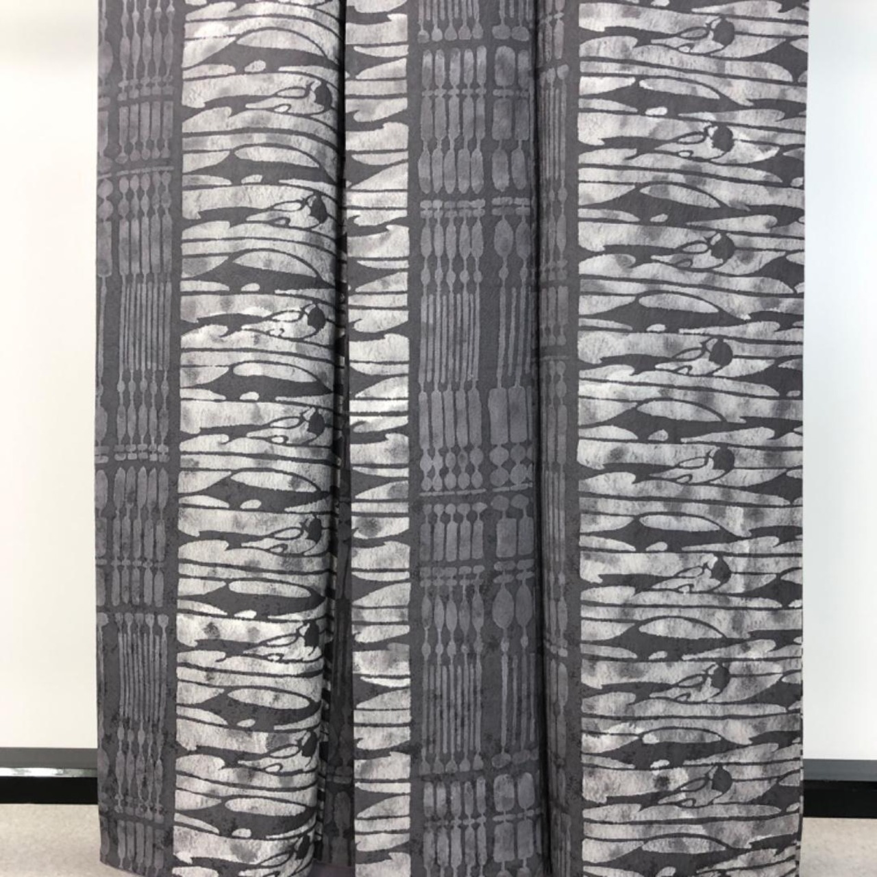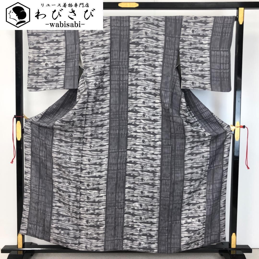 燻銀色の落ち着いたお色味に縦縞模様、モダンな抽象柄がデザインされた素敵なお品でございます。