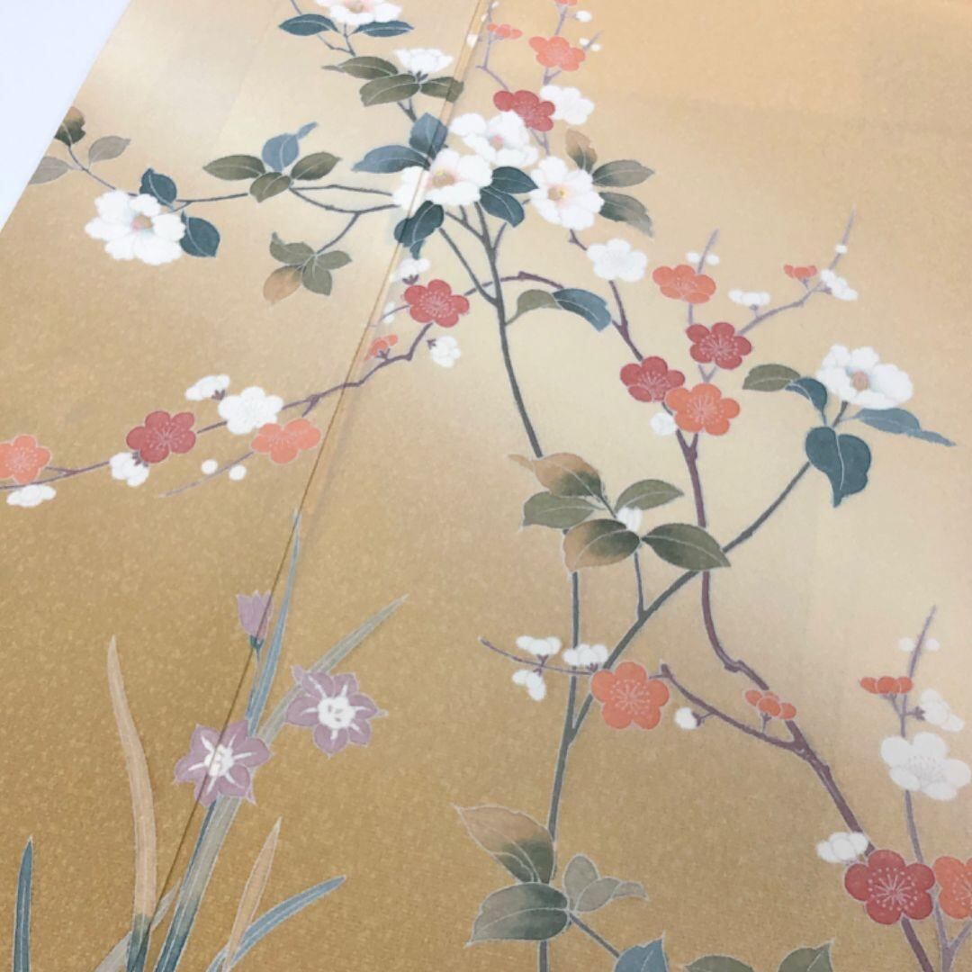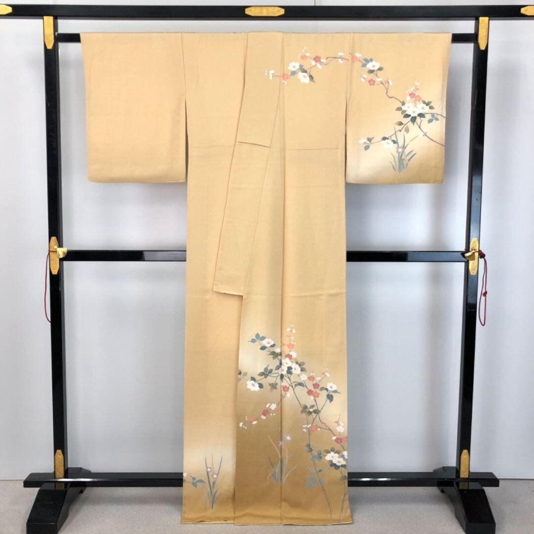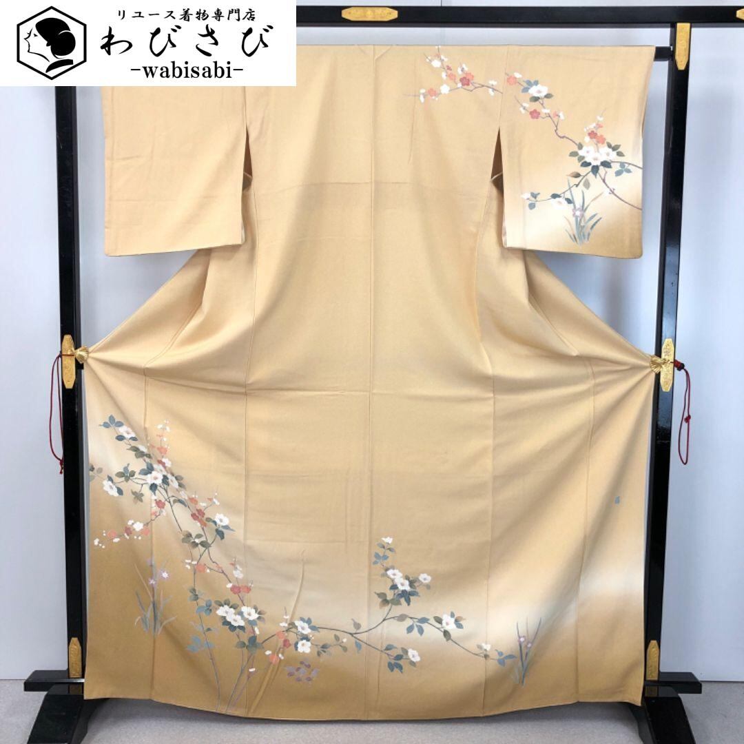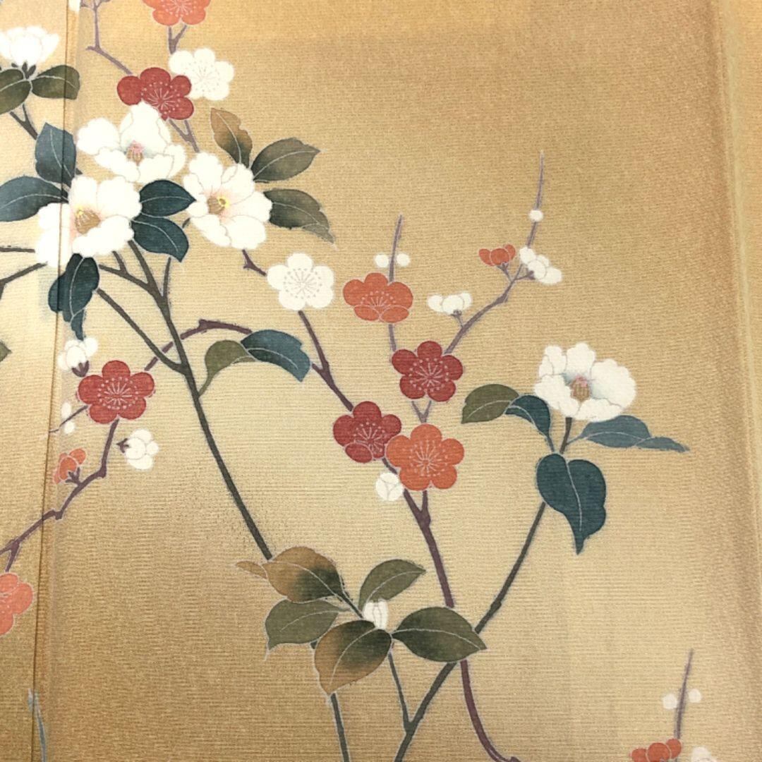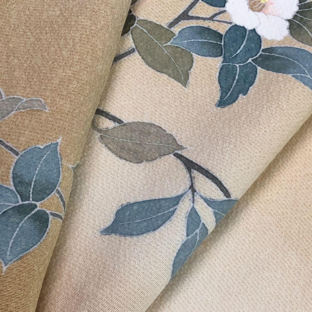 麹色のお色味に暈し、美しい花柄模様がデザインされた素敵な友禅のお品でございます。