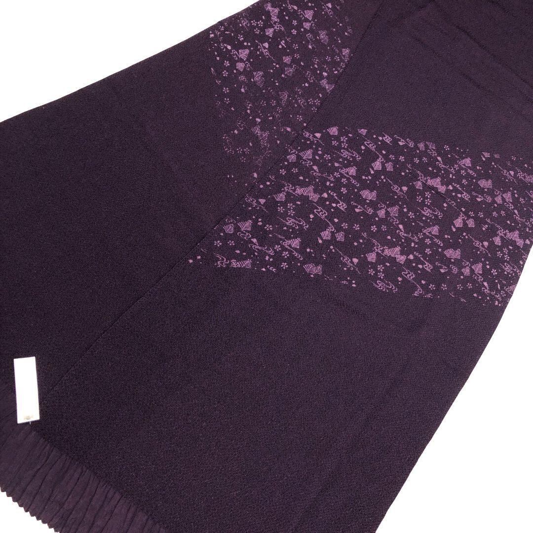和装小物 帯揚げ 正絹 花草模様 流水 縮緬 紫黒色 C-5920 着物 きもの kimono 和服 和装 中古 リサイクル着物 【送料無料】
