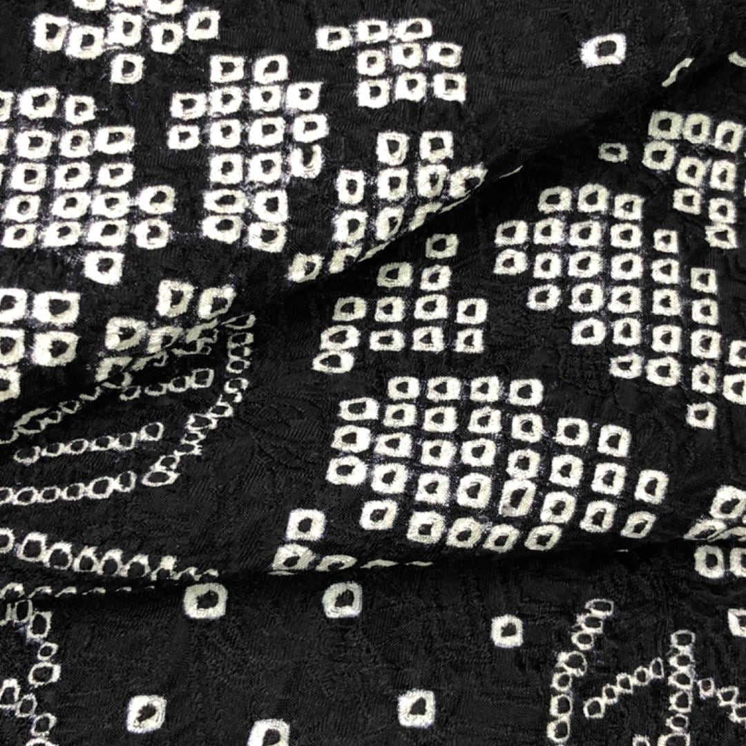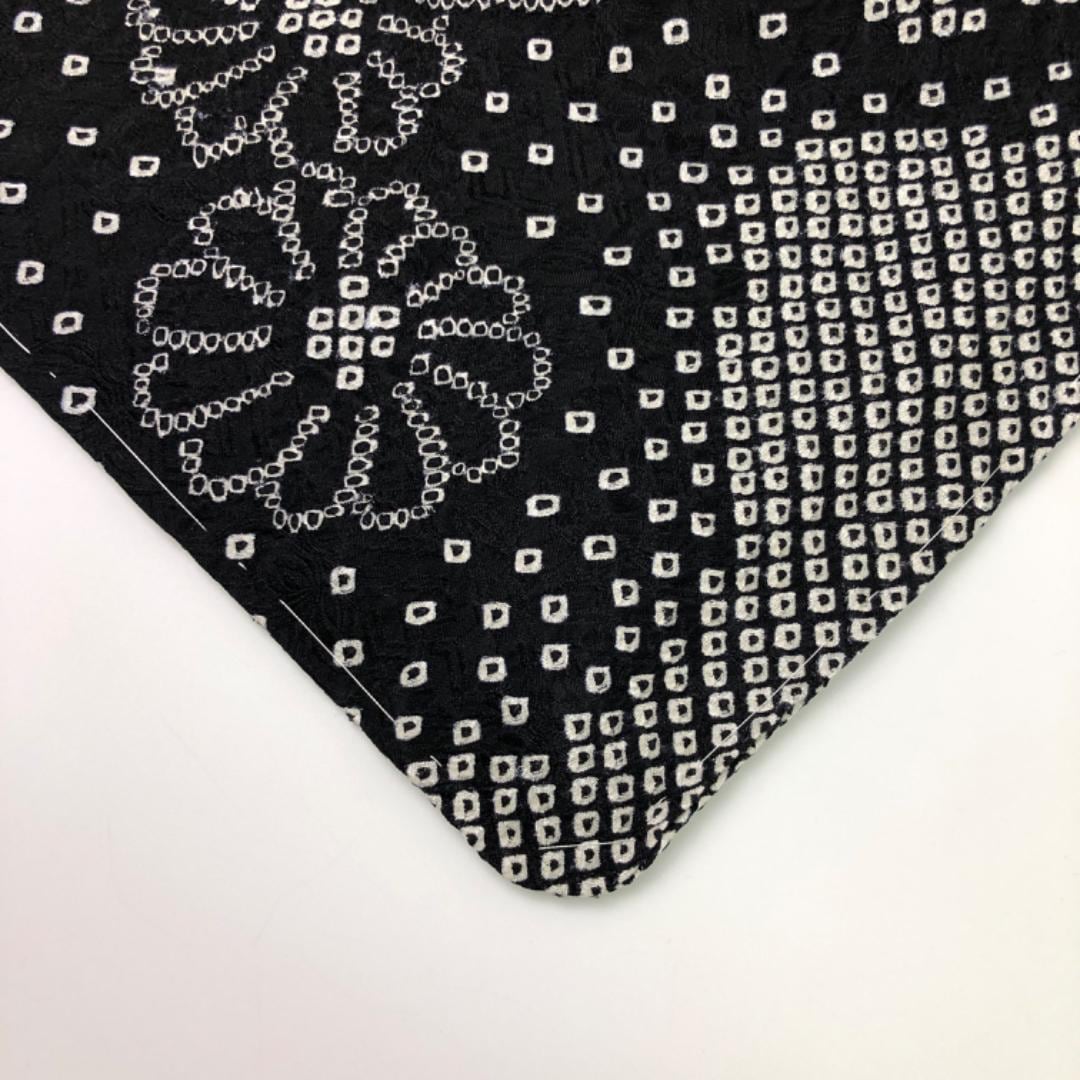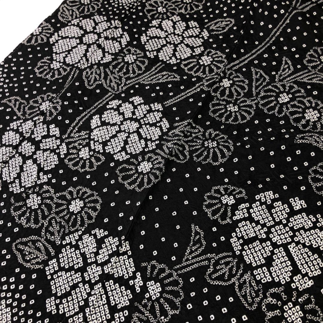 黒色のベースのモノトーンのお色味に花柄模様の絞り柄がデザインされた素敵なお品でございます。