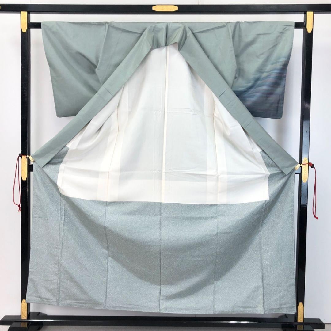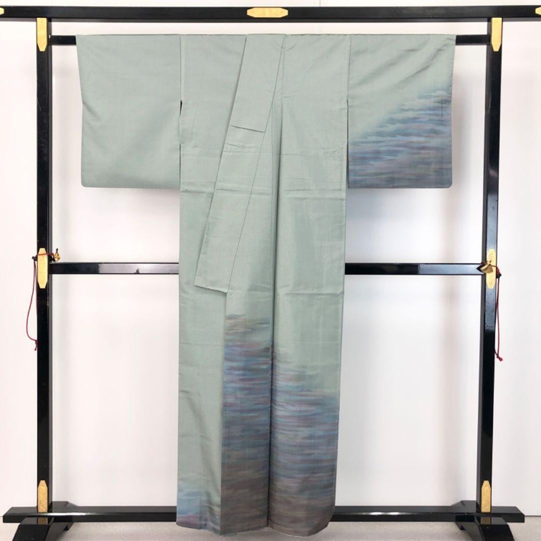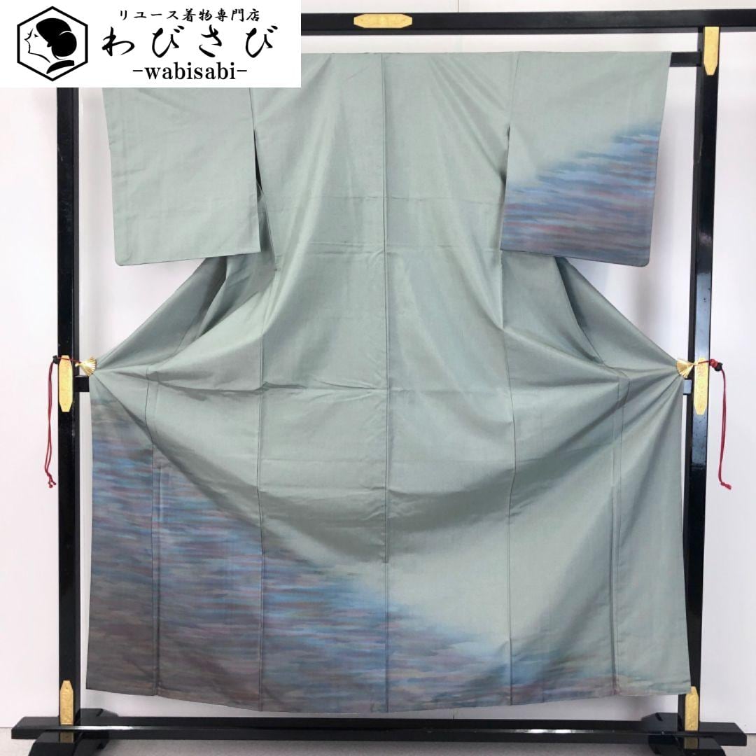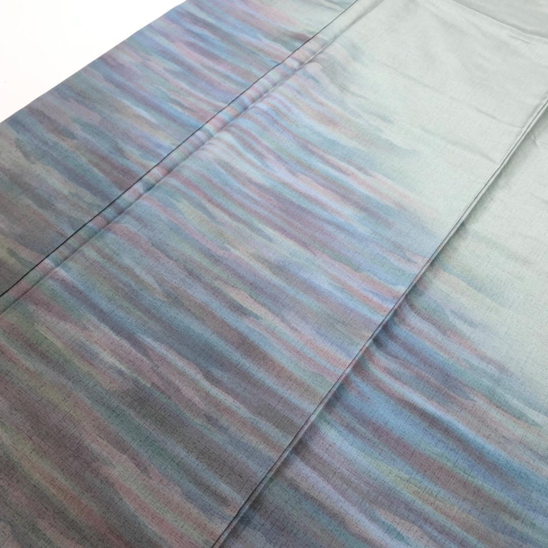 深川鼠色ベースのお色味の美しいグラデーションがデザインされた素敵な柄裄のお品でございます。
