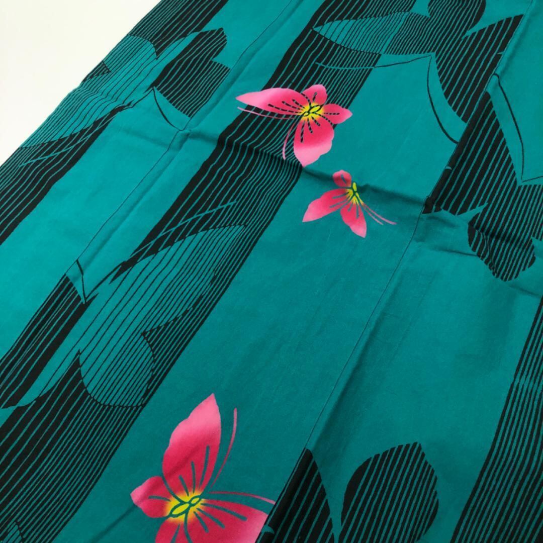 深藍色のお色味に縦縞模様に可愛らしい蝶々の柄裄がデザインされた素敵なお品でございます。