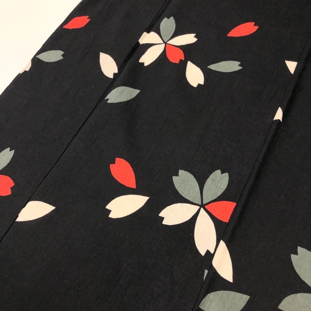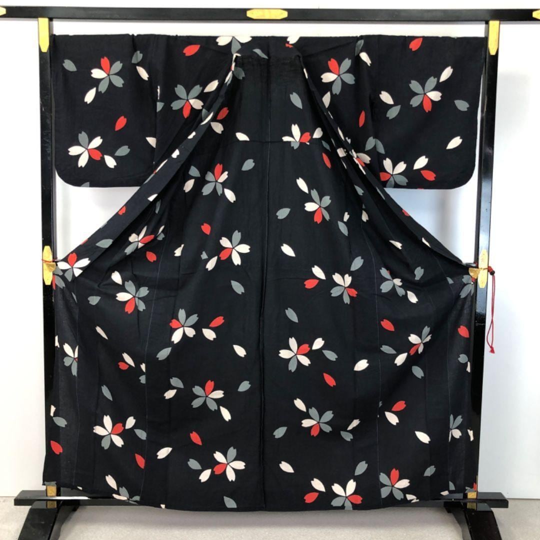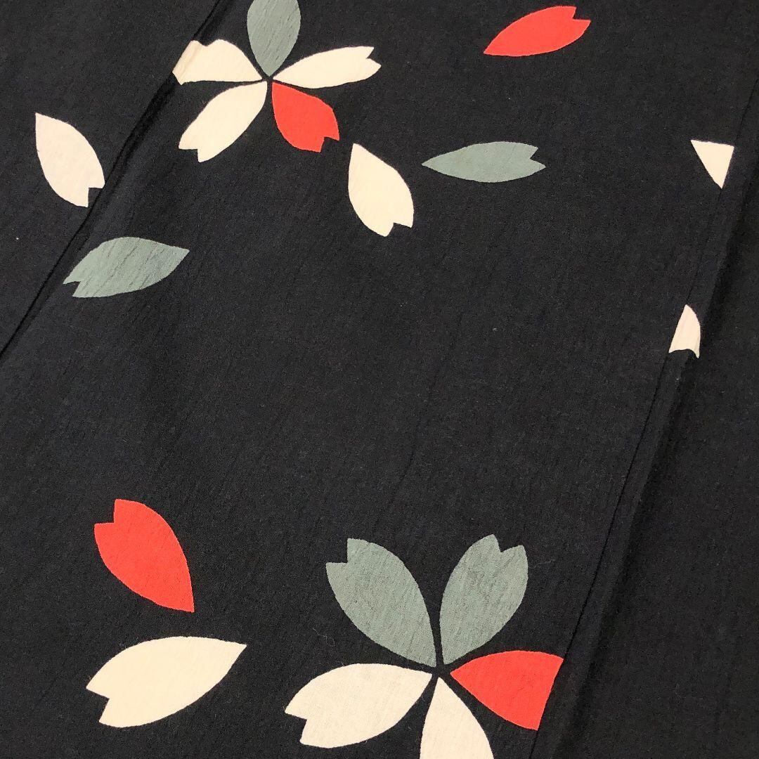 夏着物 浴衣 桜の花模様 黒色 ふくよかサイズ K-4835 着物 きもの kimono 和服 和装 中古 リサイクル着物 【送料無料】