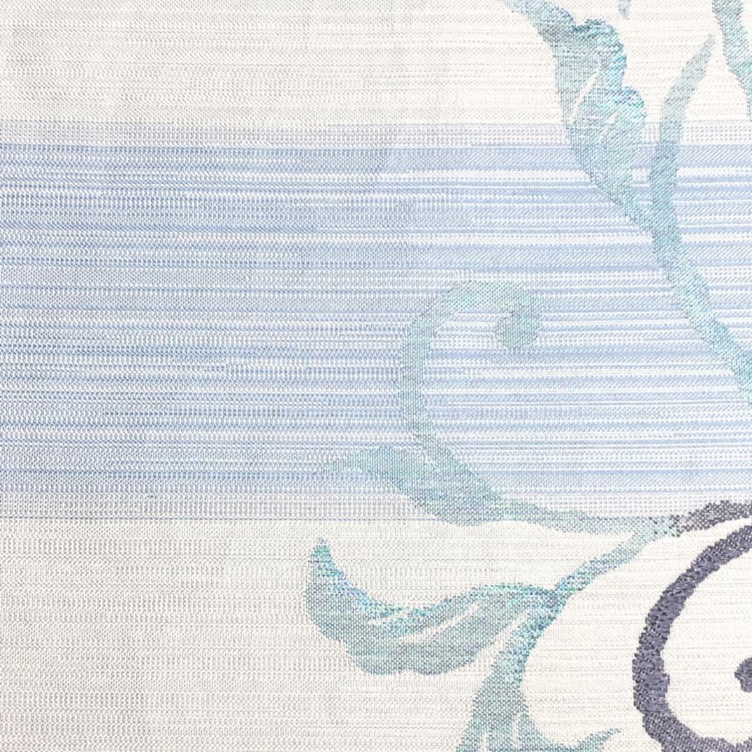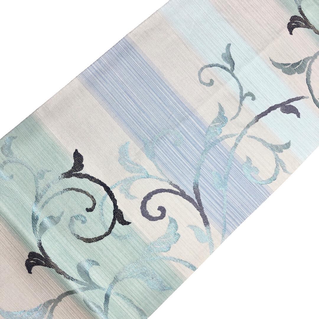 袋帯 横縞に唐草模様 銀糸 ガード加工 雲井鼠色 O-5102 着物 きもの kimono 和服 和装 中古 リサイクル着物 【送料無料】