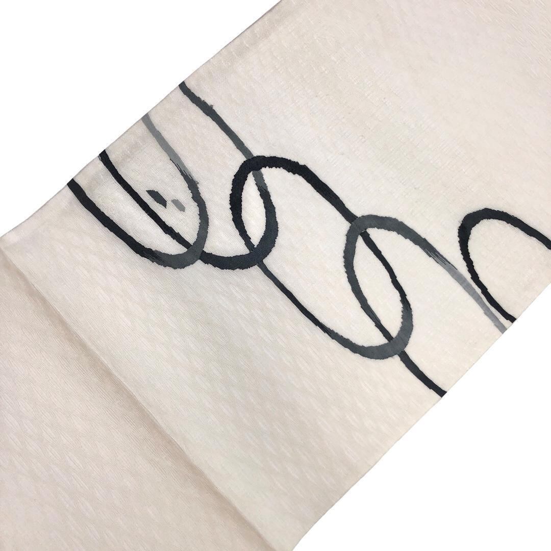 乳白色の上品なお色味に抽象流水模様がデザインされた夏すくいの素敵な柄裄のお品でございます。