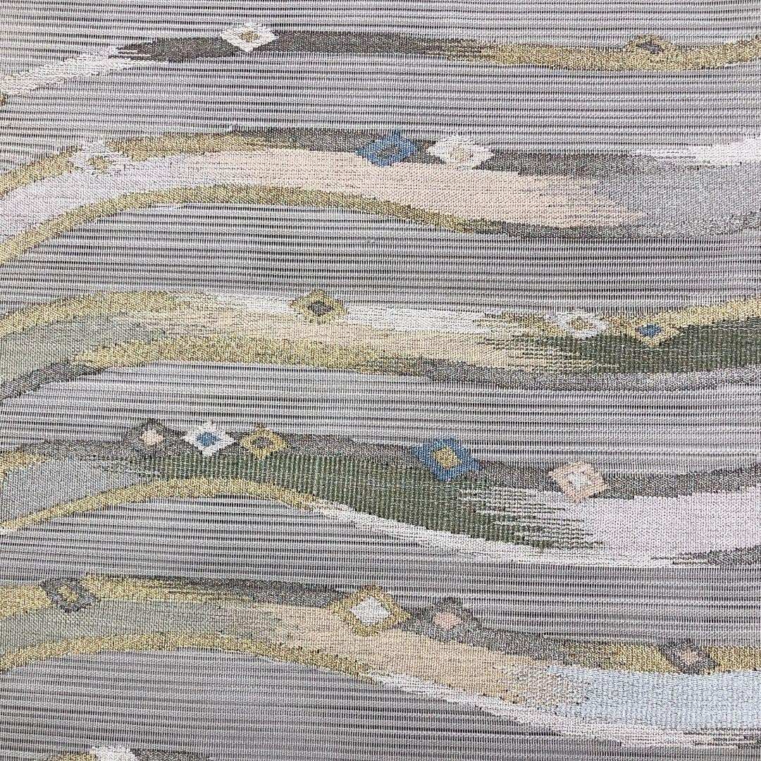 夏帯 袋帯 絽 抽象曲線模様 絹鼠色 O-5088 着物 きもの kimono 和服 和装 中古 リサイクル着物 【送料無料】