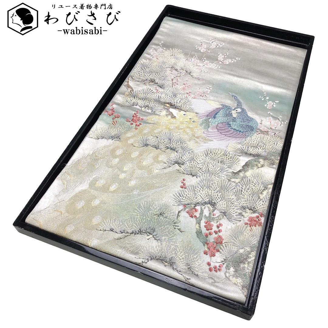 袋帯 西陣 橋本織物 加賀優彩 孔雀 松 梅 桜 金糸 卯の花色 O-5129 着物 きもの kimono 和服 和装 中古 リサイクル着物 【送料無料】