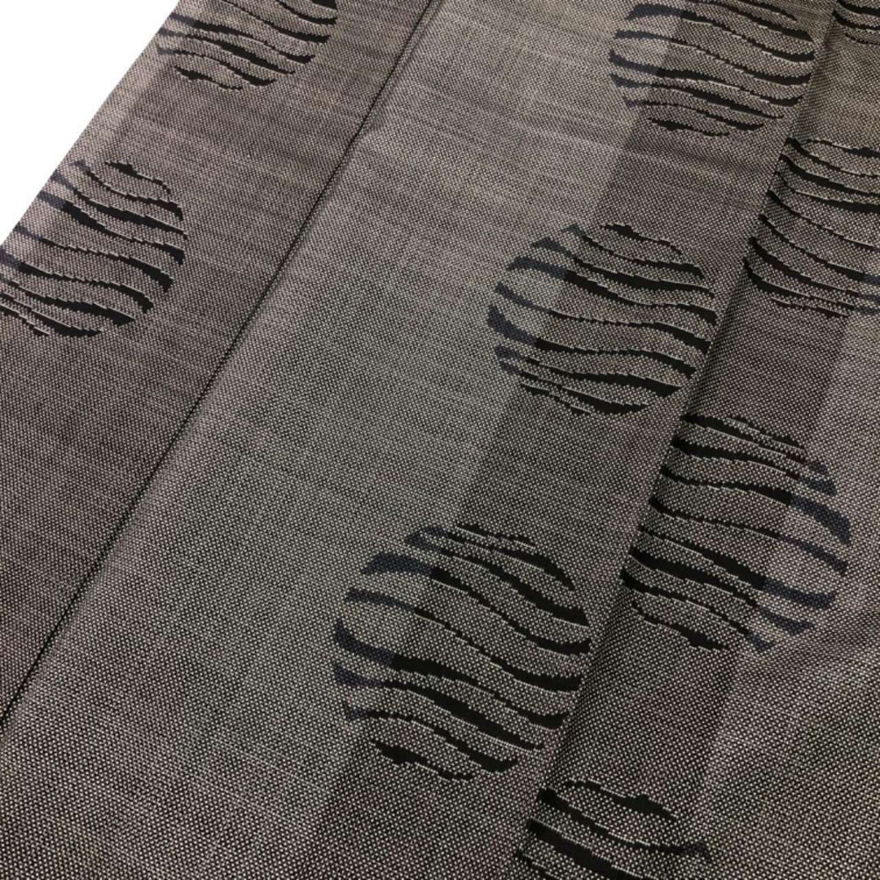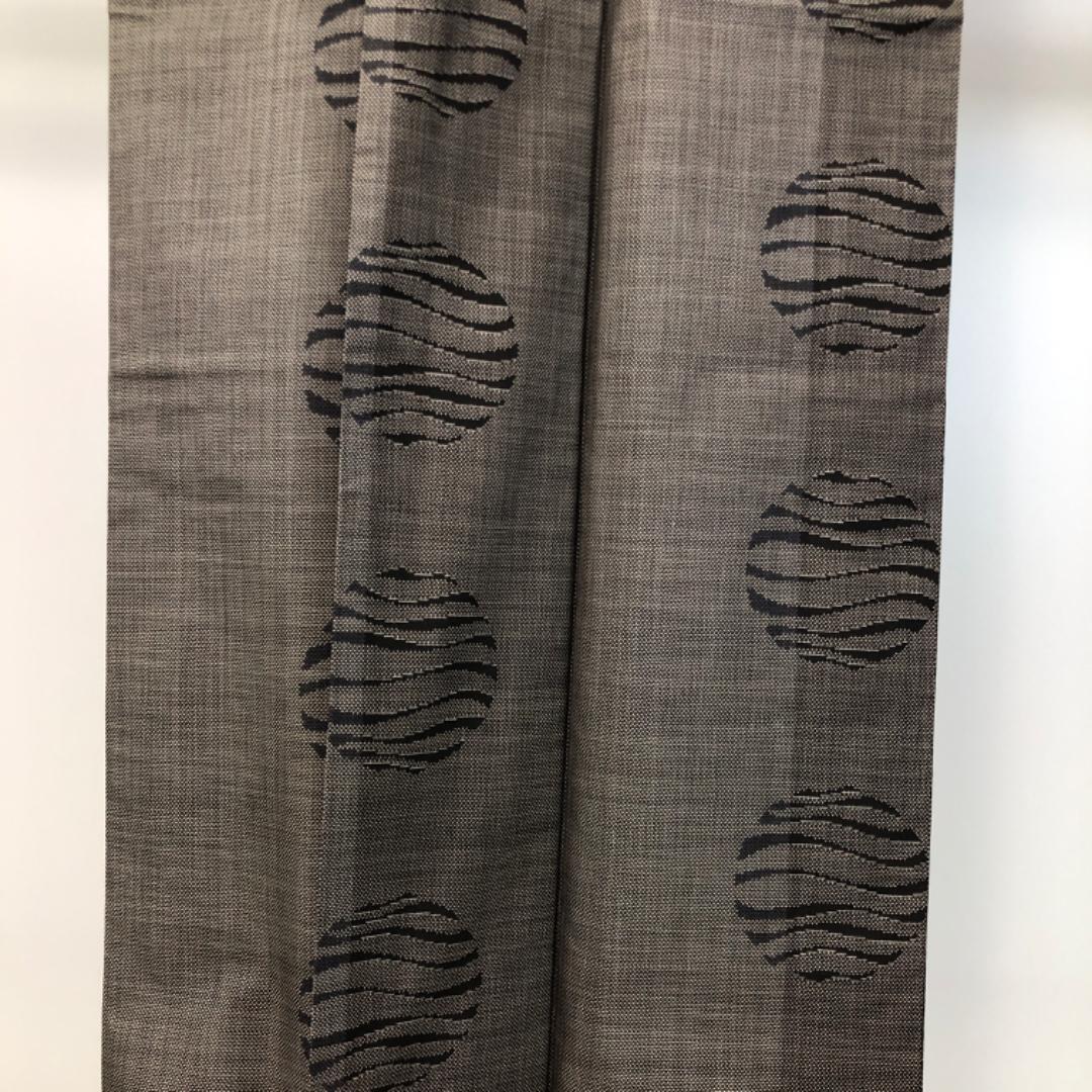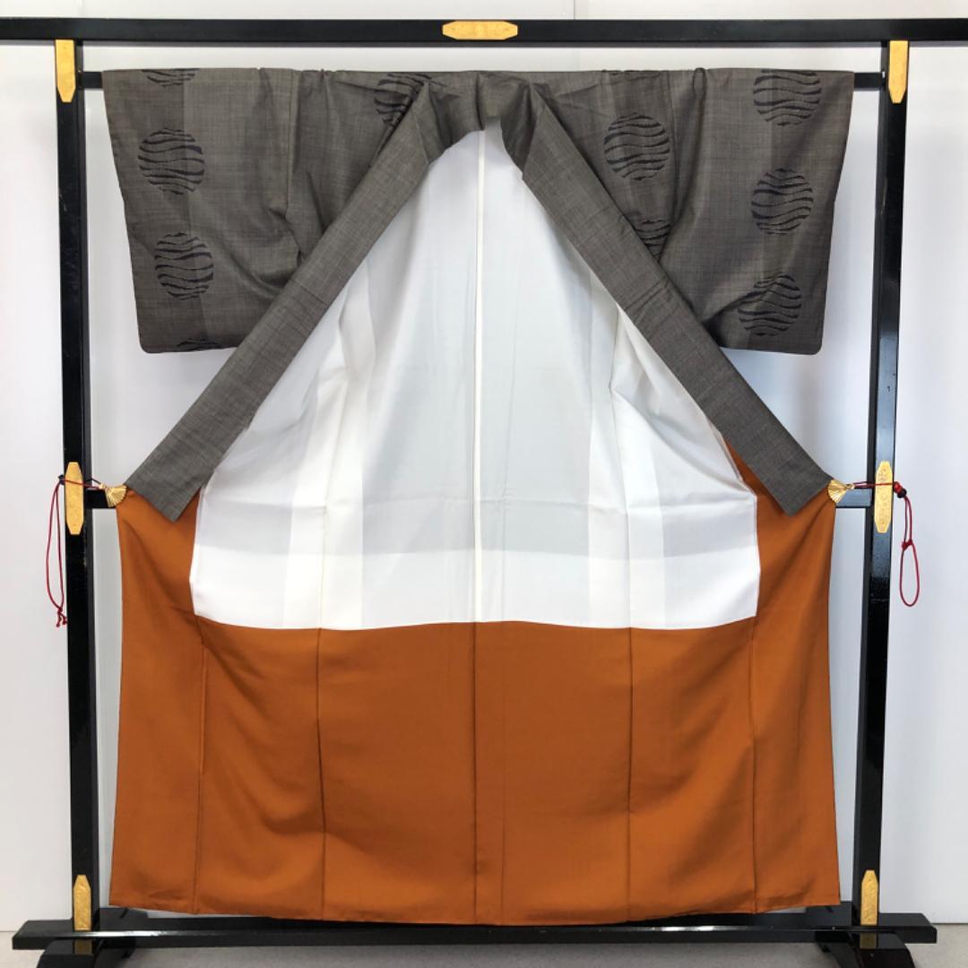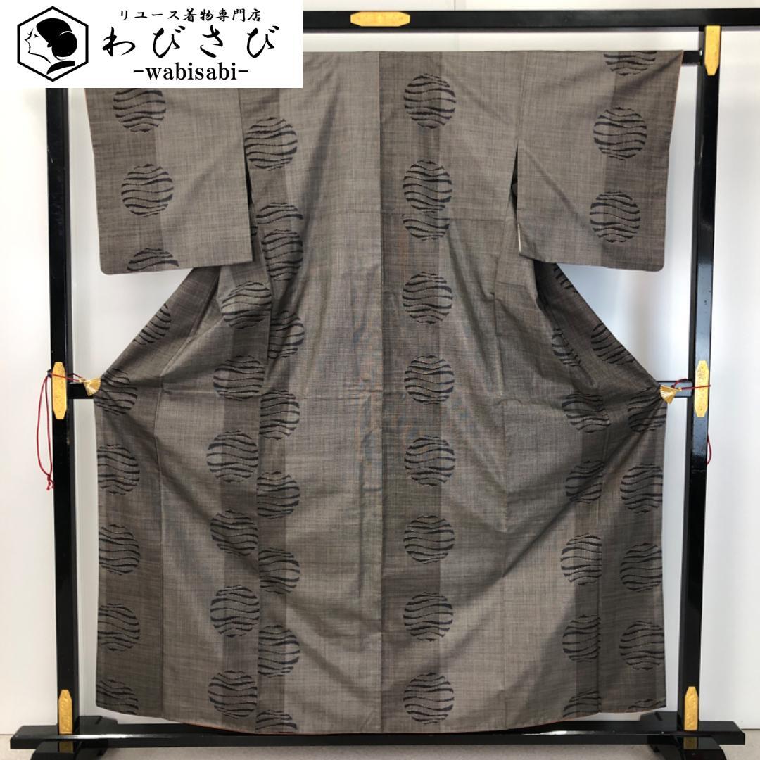 古代染色純泥染の雰囲気の良いお色味、丸に曲線模様の柄裄がデザインされた素敵なお品でございます。