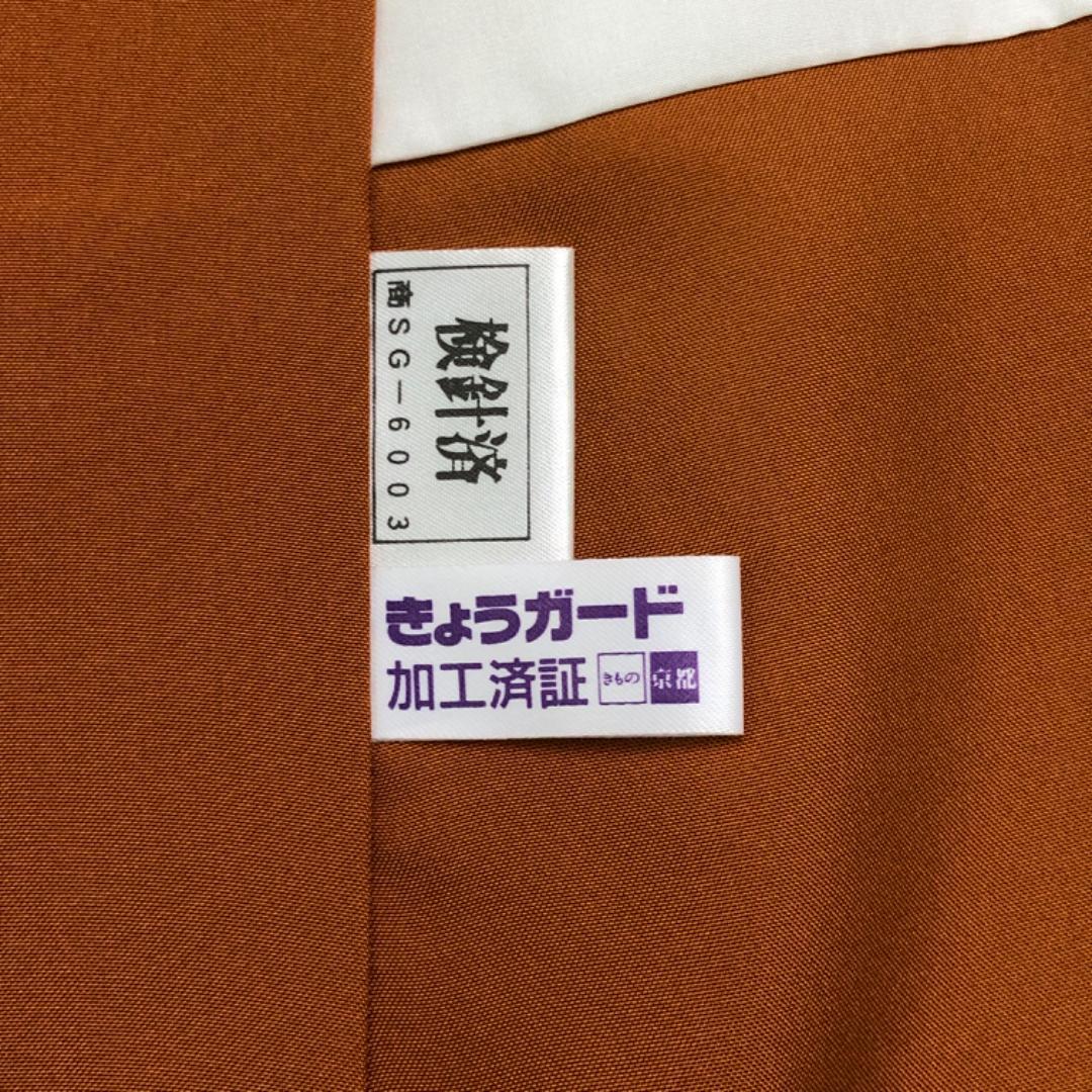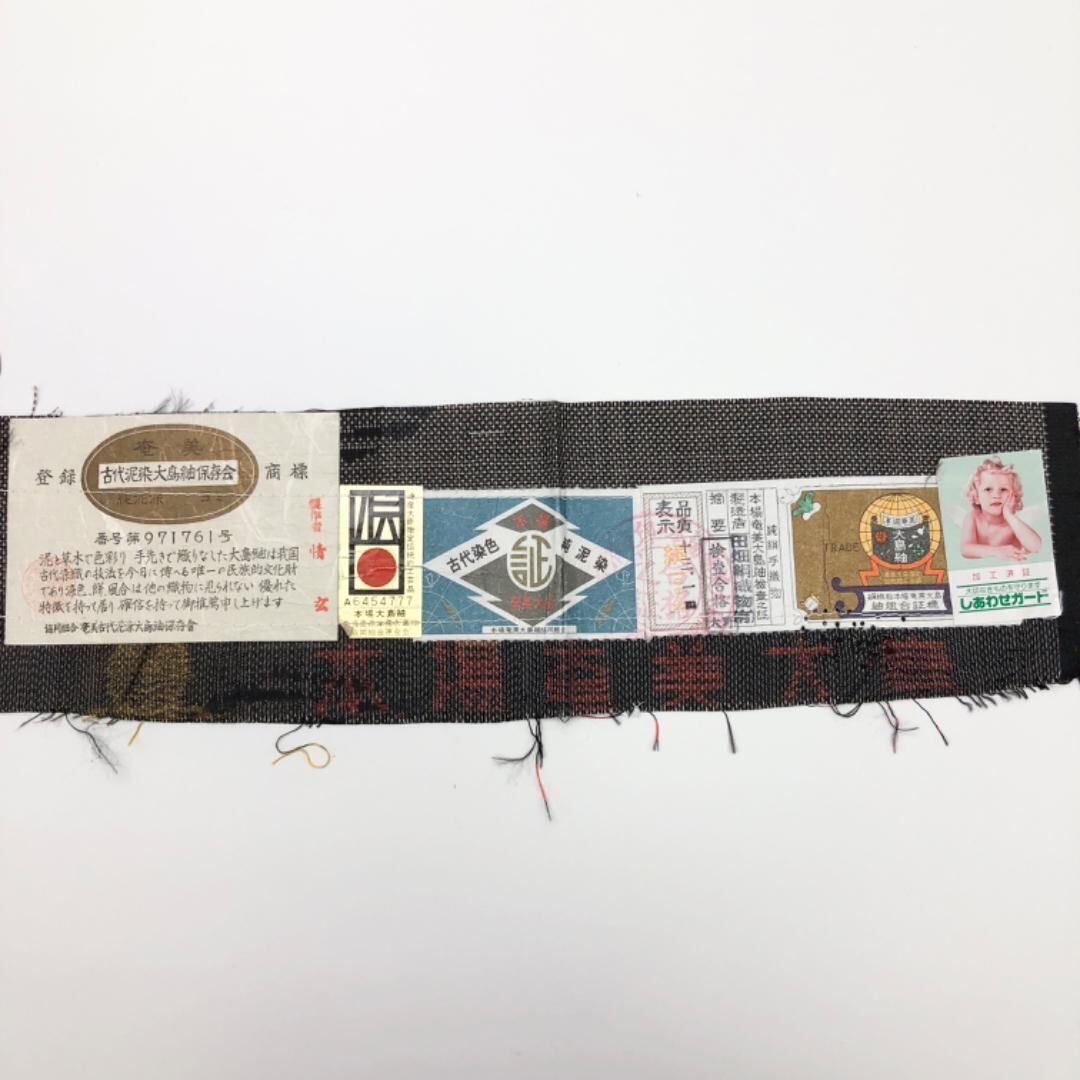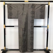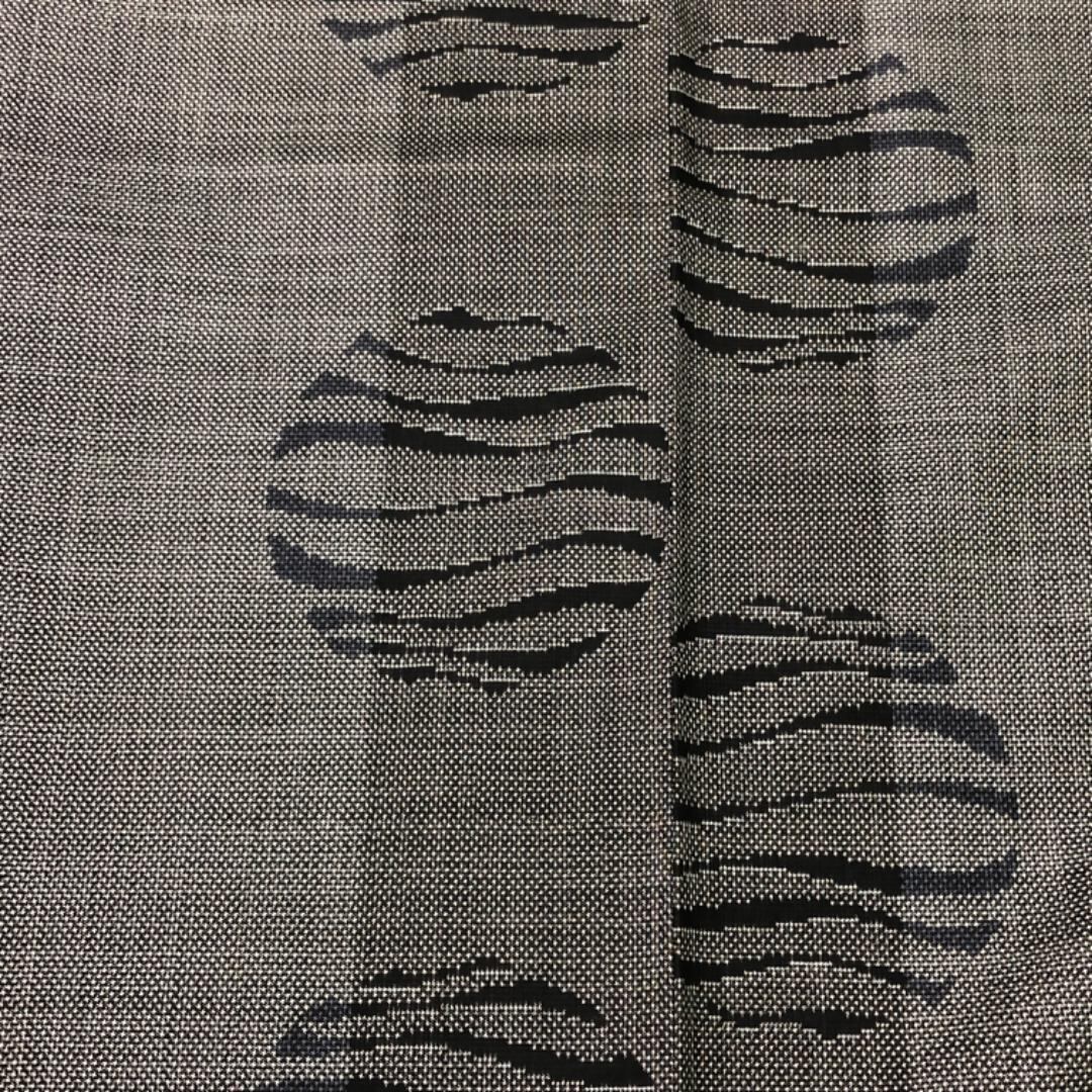 古代染色純泥染の雰囲気の良いお色味、丸に曲線模様の柄裄がデザインされた素敵なお品でございます。
