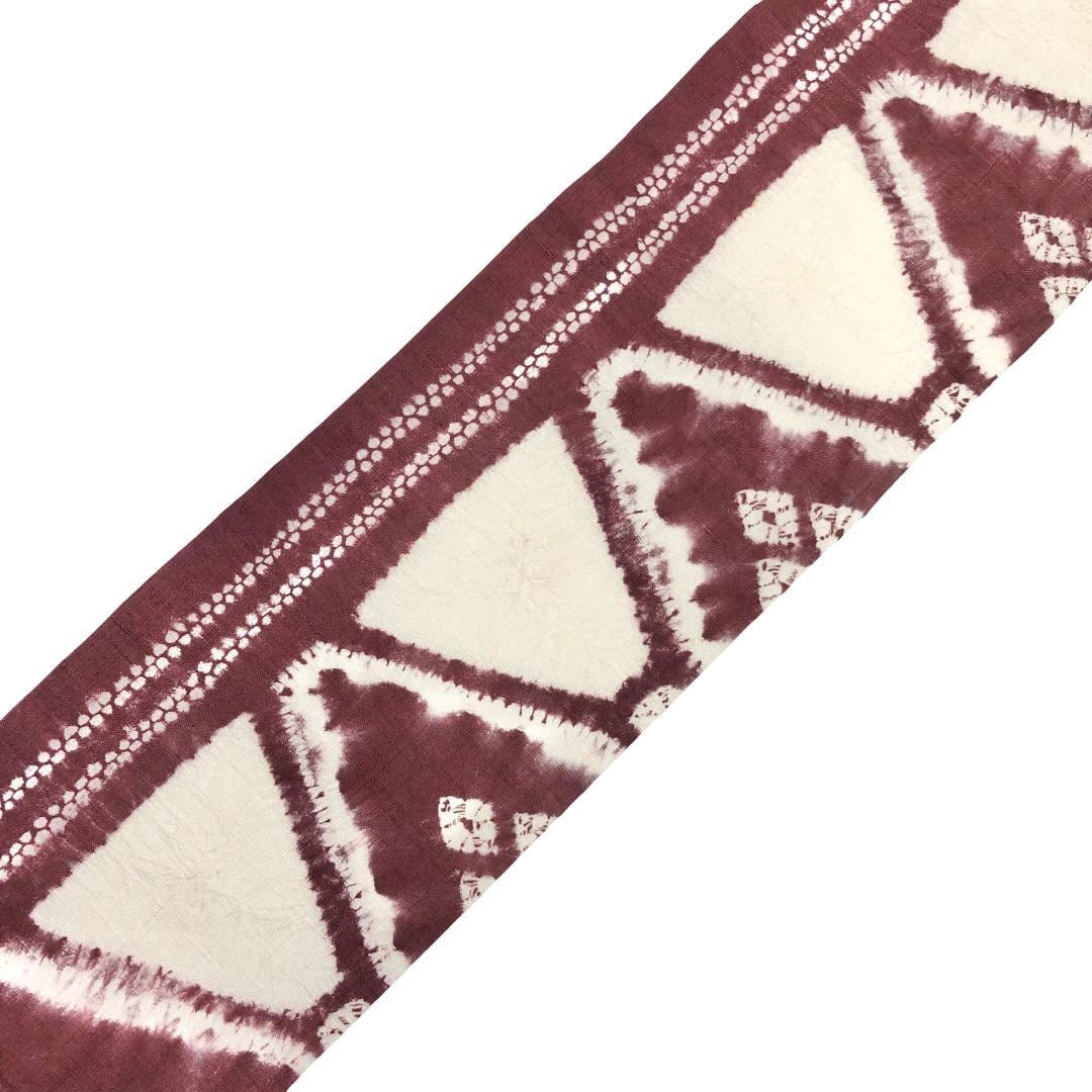 深蘇芳色ベースのお色味に絞り柄、菱形模様がデザインされた素敵な柄裄のお品でございます。