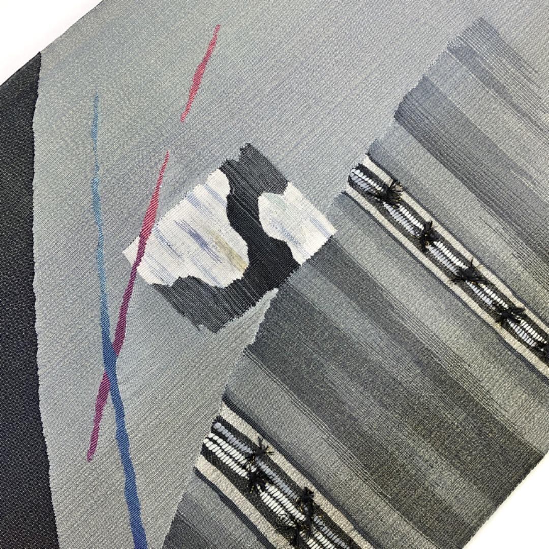 錫紵色のお色味に雰囲気の良い抽象柄の織模様がデザインされた素敵なお品でございます。