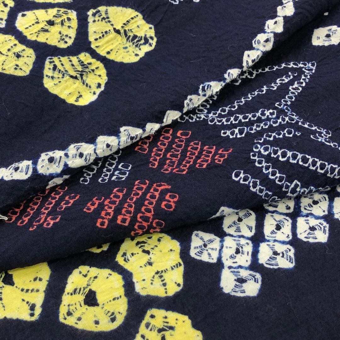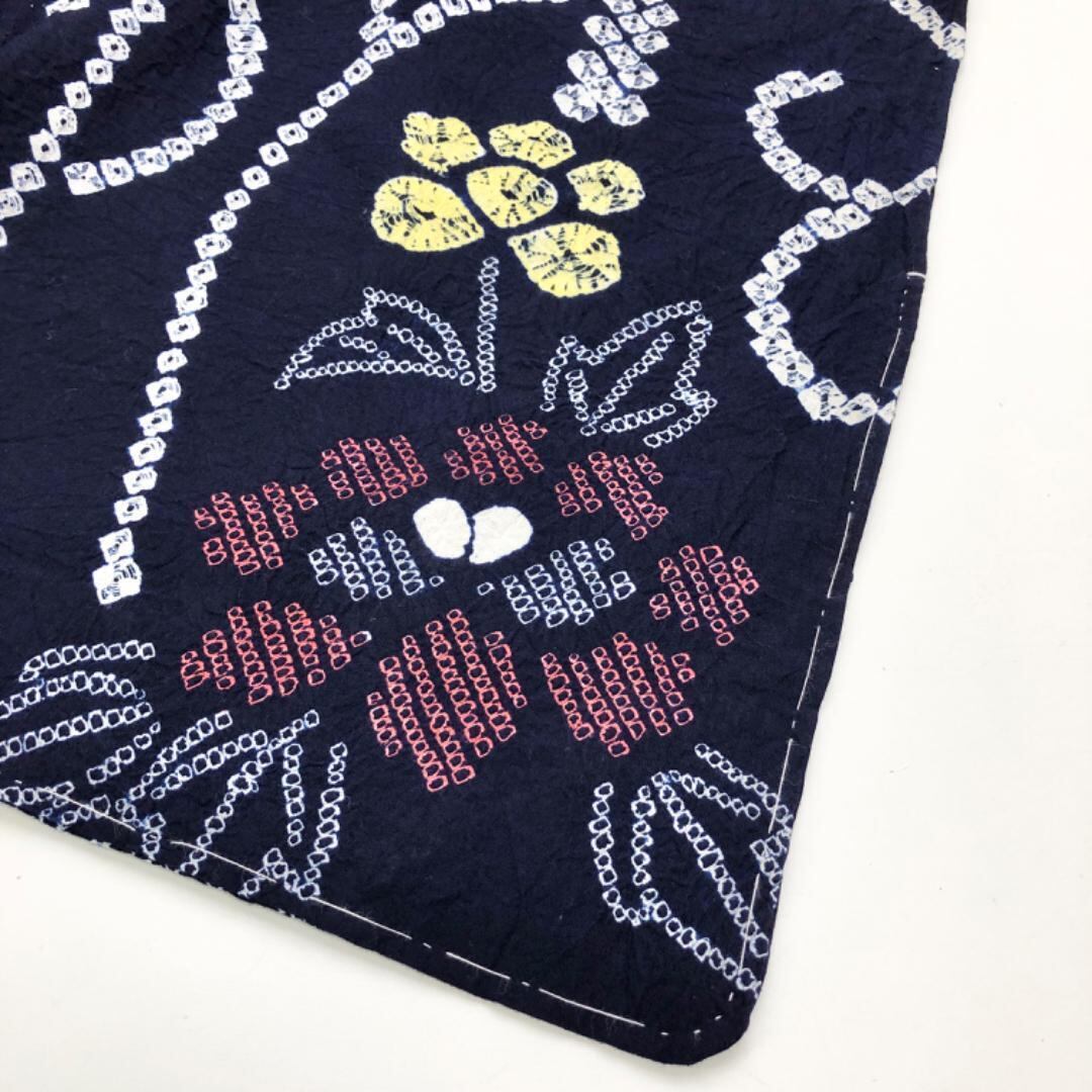 夏着物 浴衣 有松鳴海本絞り 花唐草模様 藍色 しつけ糸 K-4860 着物 きもの kimono 和服 和装 中古 リサイクル着物 【送料無料】