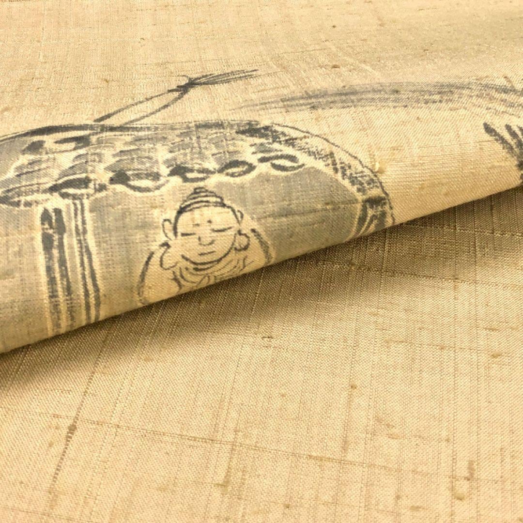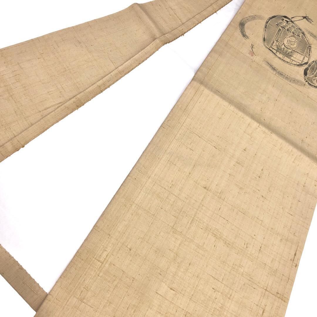 枯野色の自然な風合いのお色味に墨書きの雰囲気の良い柄行がデザインされた素敵なお品でございます。