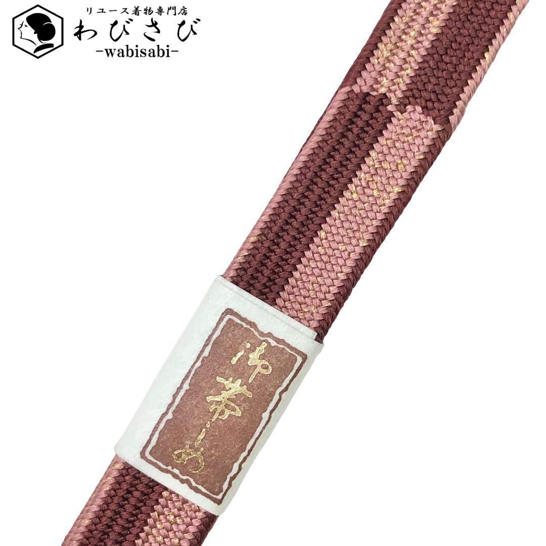 和装小物 帯締め 正絹 高麗組 平組紐 組紐 溜色 金糸 C-5964 着物 きもの kimono 和服 和装 中古 リサイクル着物 【送料無料】