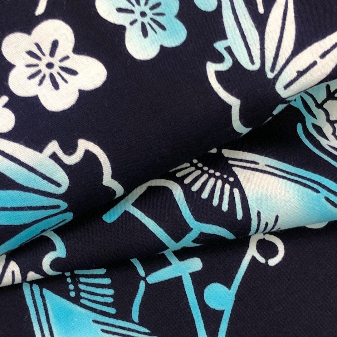 夏着物 浴衣 松竹梅に茶屋 雪輪 青褐色 K-4848 着物 きもの kimono 和服 和装 中古 リサイクル着物 【送料無料】