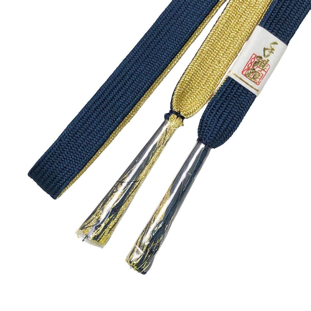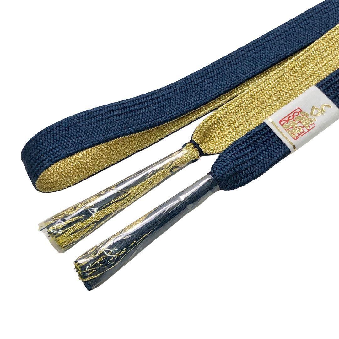 和装小物 帯締め 正絹 高麗組 平組紐 組紐 鉄紺色 金糸 C-5962 着物 きもの kimono 和服 和装 中古 リサイクル着物 【送料無料】