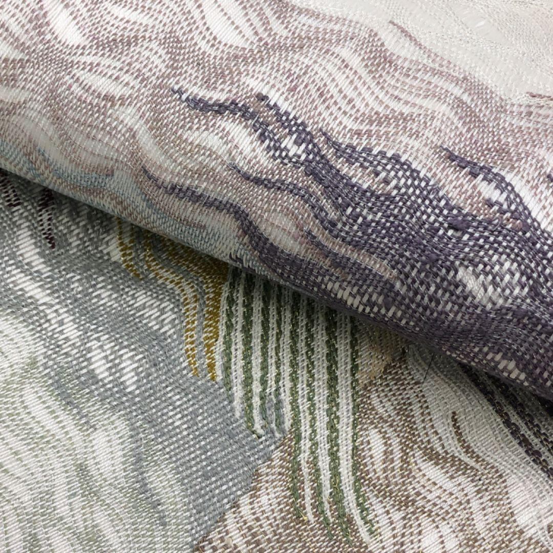 夏帯 袋帯 夏すくい 抽象模様 乳白色 金銀糸 O-5139 着物 きもの kimono 和服 和装 中古 リサイクル着物 【送料無料】