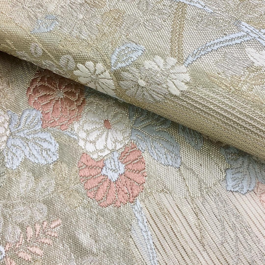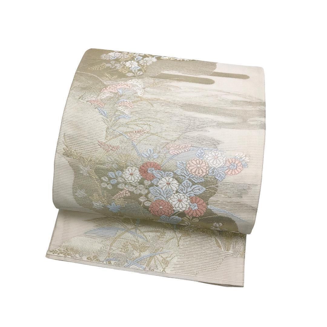 乳白色の上品なお色味に霞に花模様がデザインされた素敵な柄裄のお品でございます。