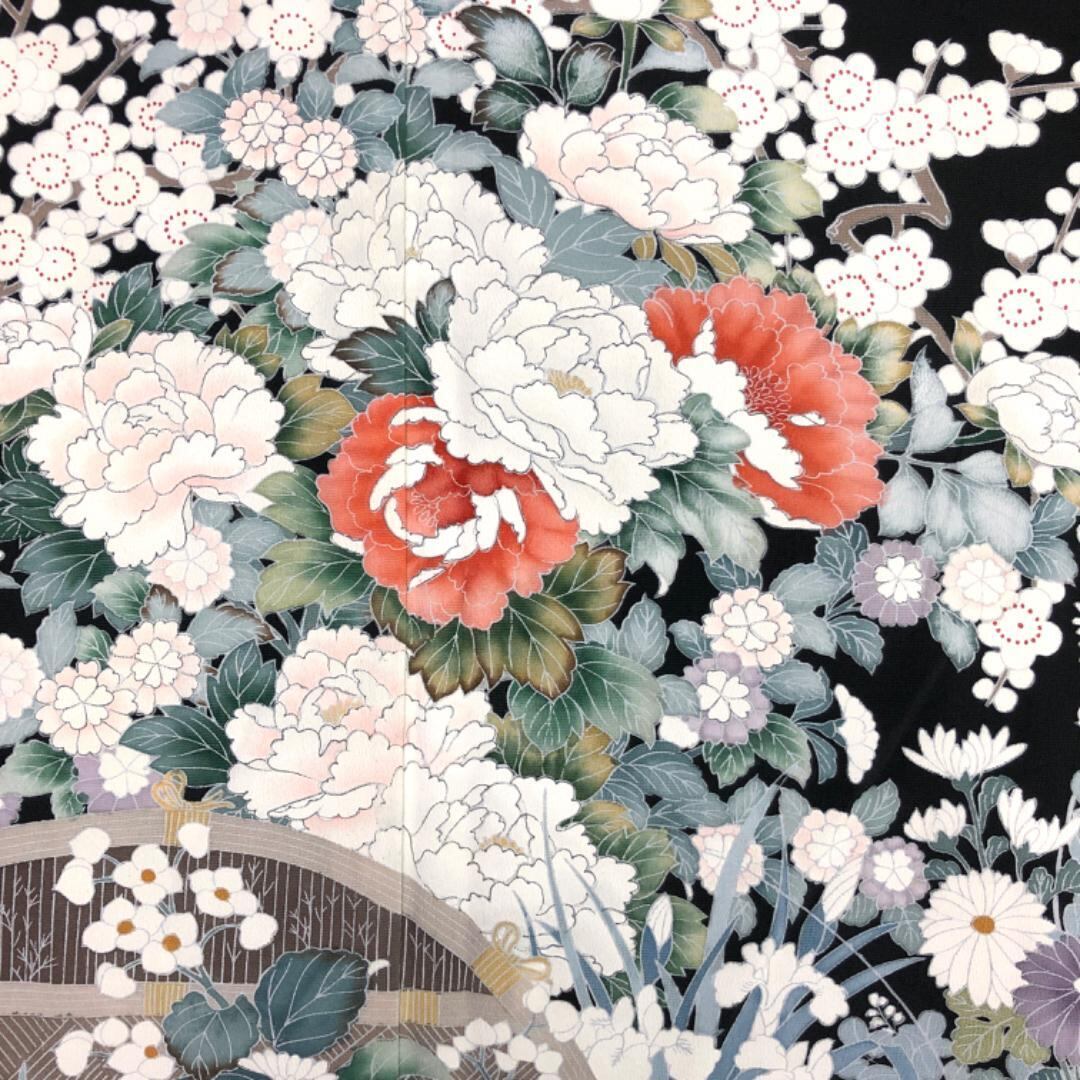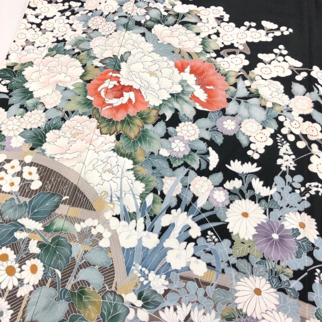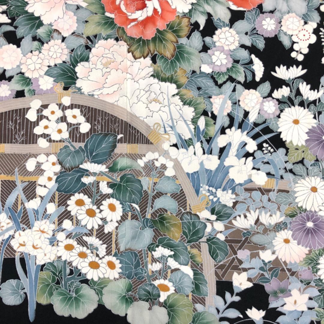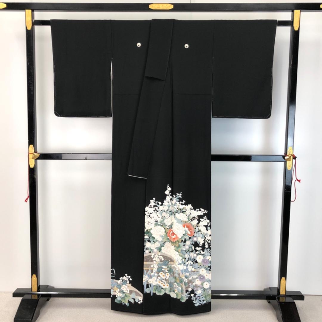 黒留袖 作家物 友禅 美しい花模様 K-4888 着物 きもの kimono 和服 和装 中古 リサイクル着物 【送料無料】
