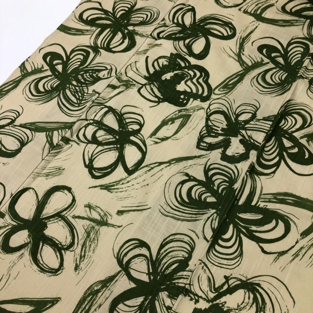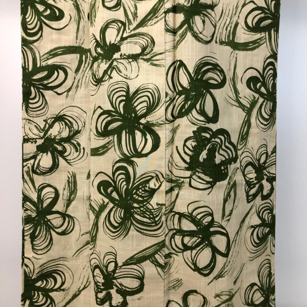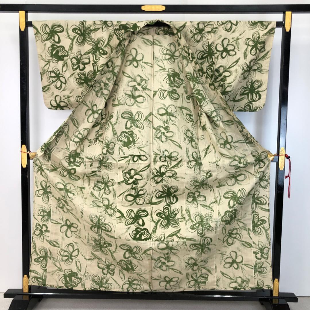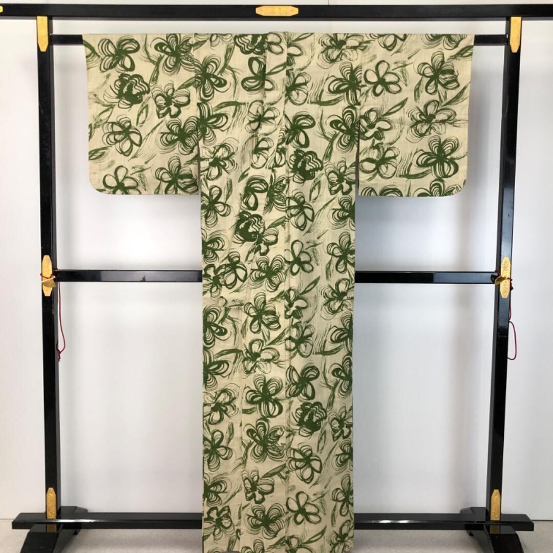 鳥の子色のお色味に抽象花模様の柄裄がデザインされた素敵なお品でございます。