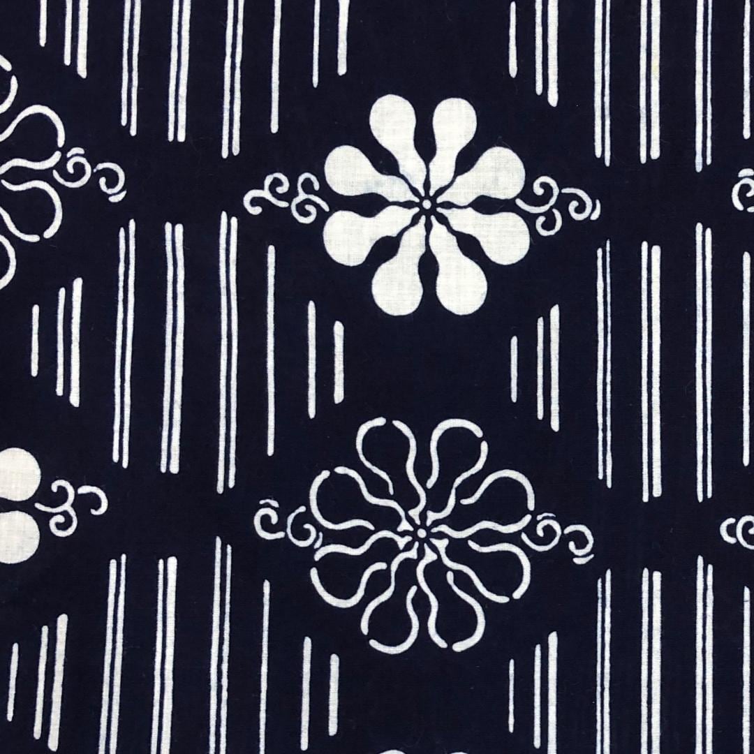 夏着物 浴衣 菱形 花模様 藍色 しつけ糸 K-4851 着物 きもの kimono 和服 和装 中古 リサイクル着物 【送料無料】