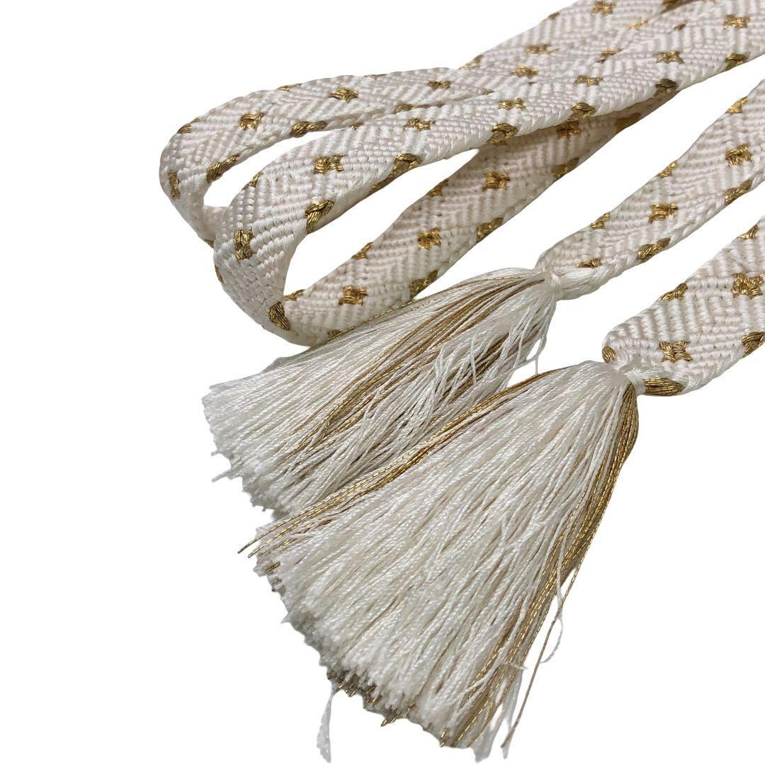 和装小物 帯締め 正絹 平組紐 組紐 乳白色 礼装 金糸 C-5971 着物 きもの kimono 和服 和装 中古 リサイクル着物 【送料無料】