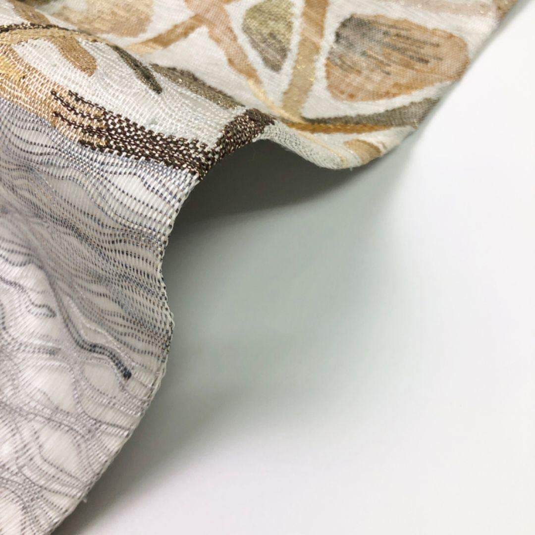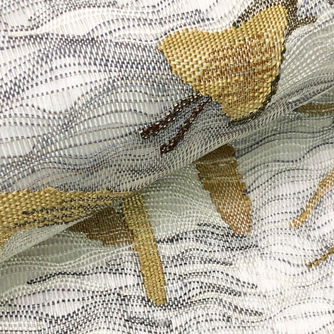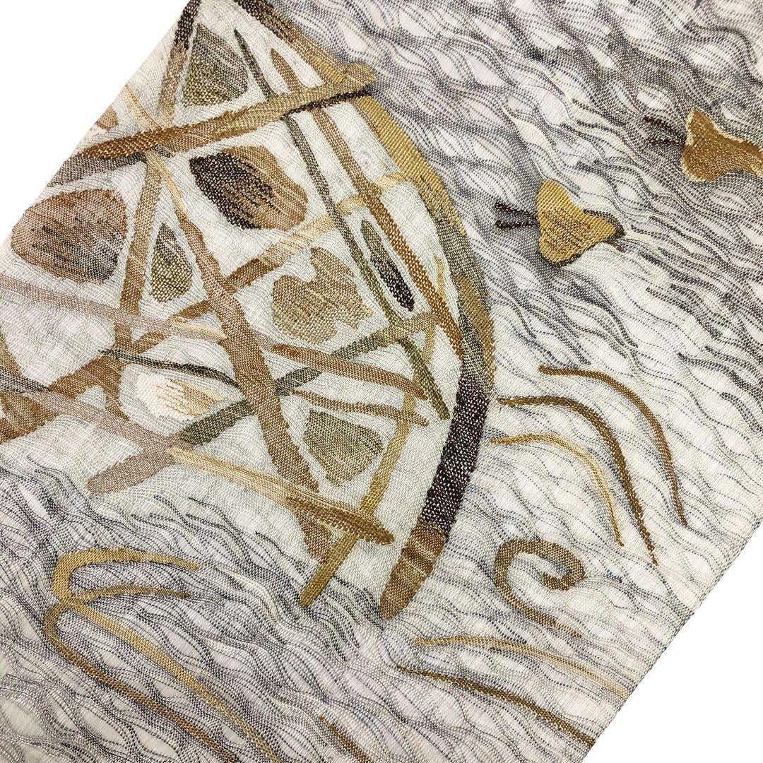 乳白色ベースのお色味に雰囲気の良い透け感のある夏すくい織、千鳥に波模様の柄裄がデザインされた素敵なお品でございます。