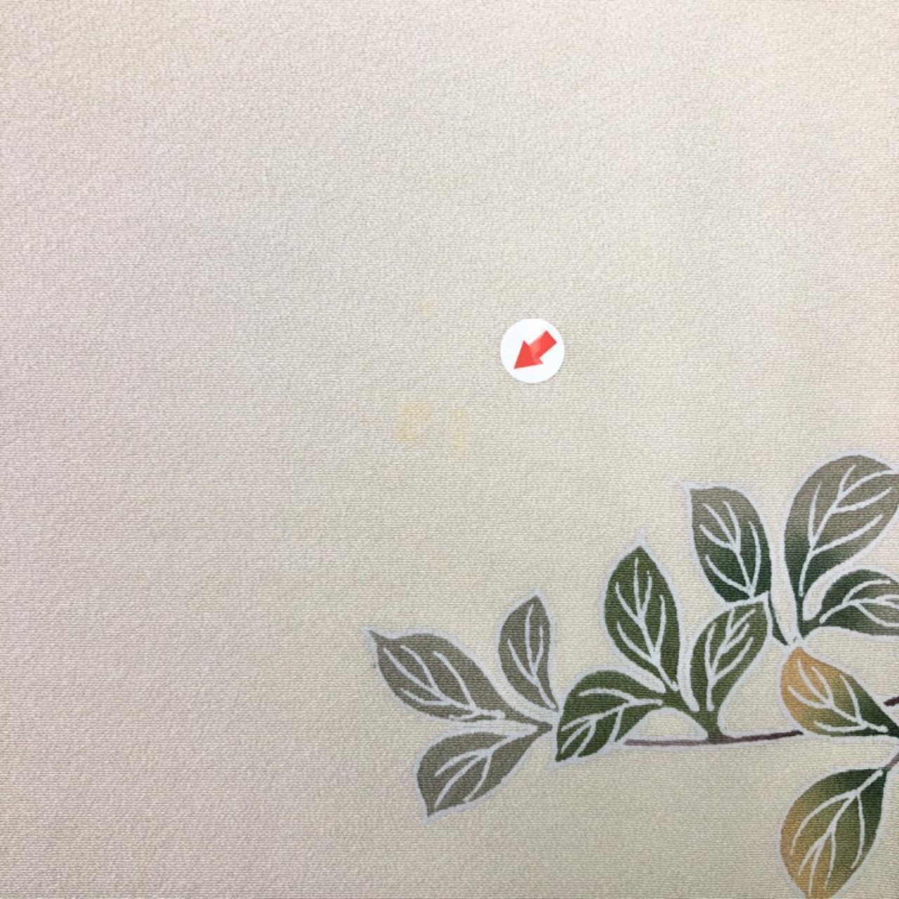 砂色の上品なお色味の縮緬地に暈し、美しい花模様がデザインされた素敵な柄行のお品でございます。