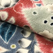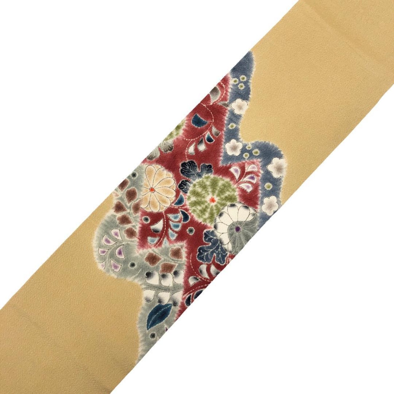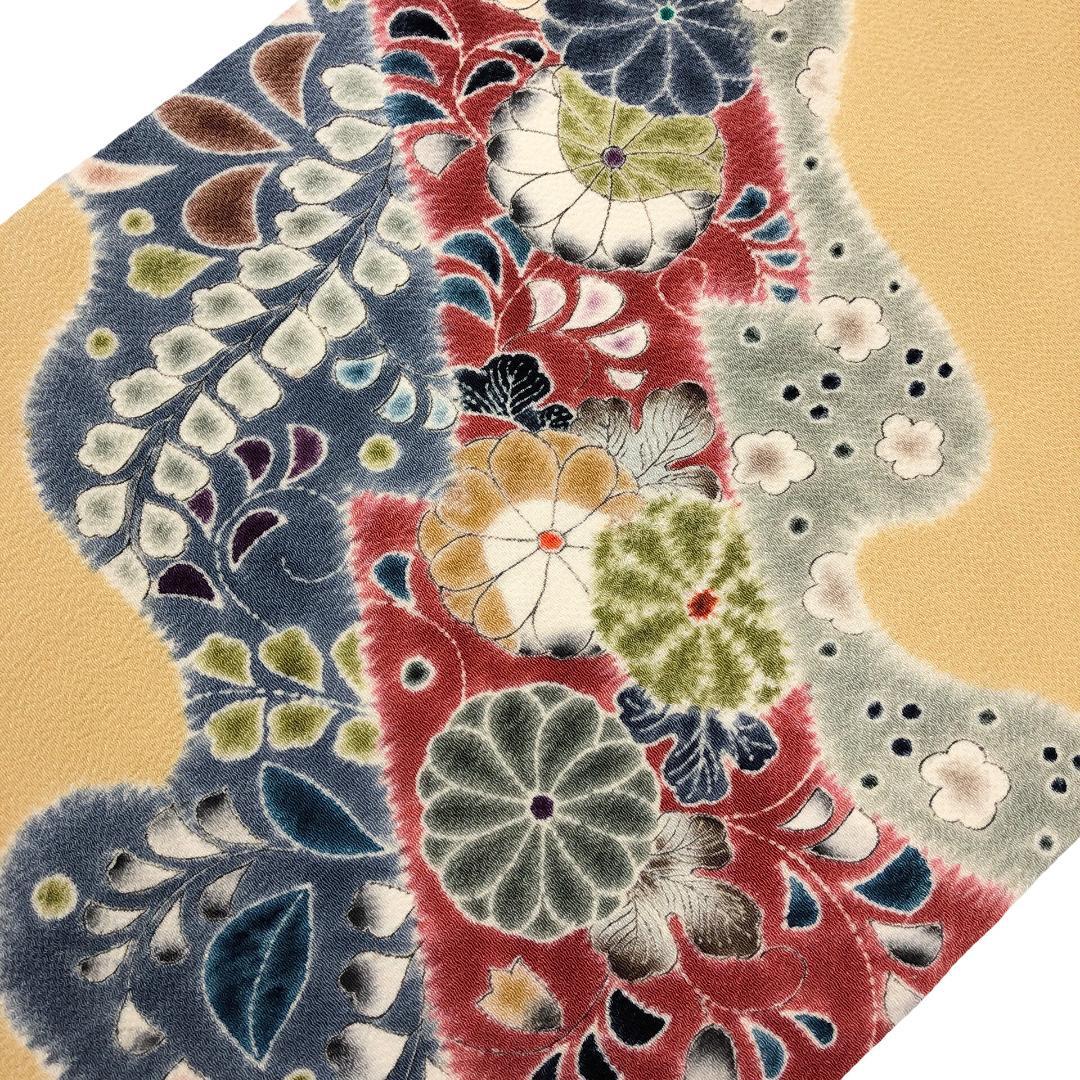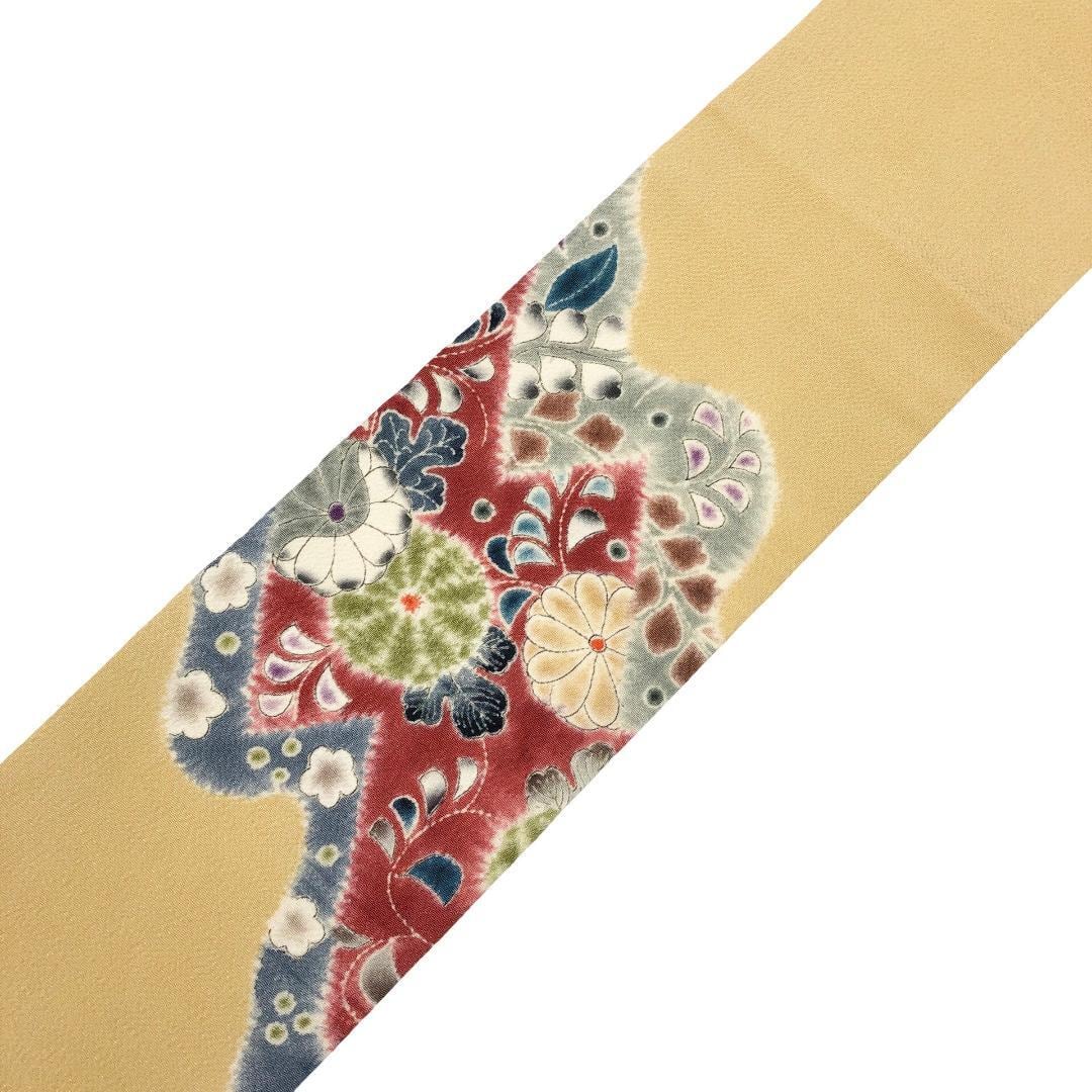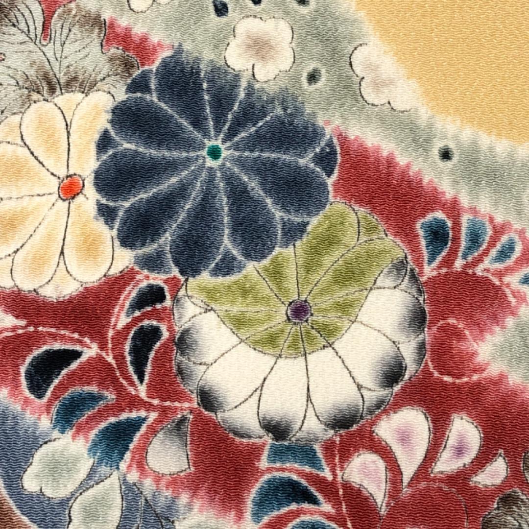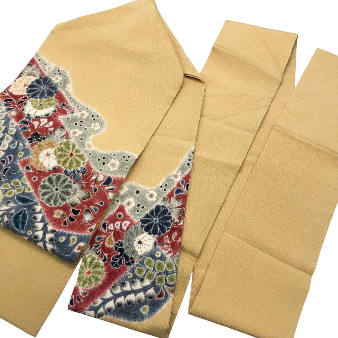 黄唐紙色のお色味に絞り染の花模様がデザインされた素敵なお品でございます。