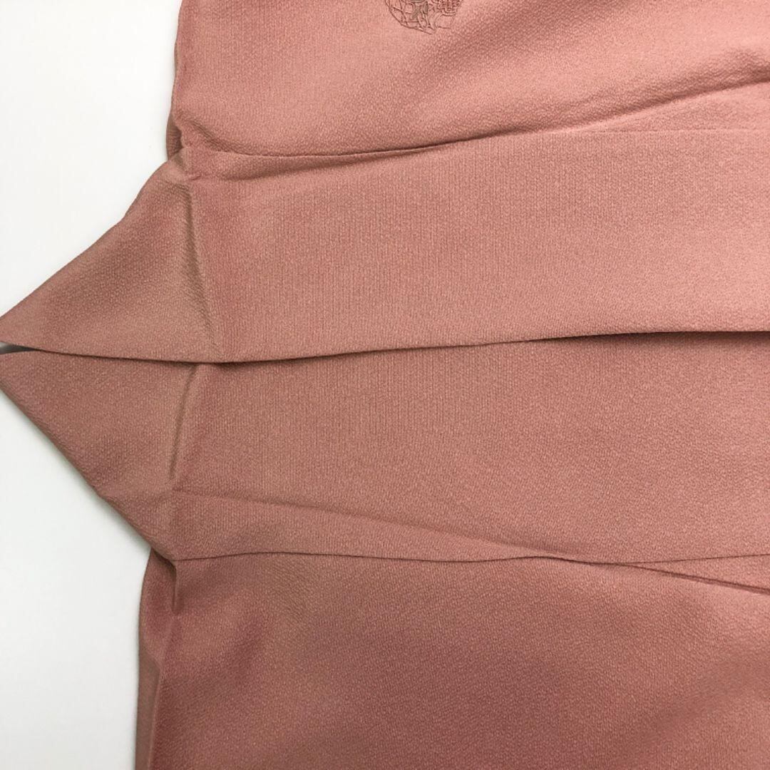 付下げ 刺繍柄 霞に四季の花模様 水柿色 縮緬 K-4856 着物 きもの kimono 和服 和装 中古 リサイクル着物 【送料無料】