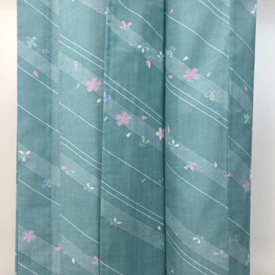 薄新橋色の雰囲気の良いお色味に斜線に桜の花びら模様がデザインされた素敵なお品でございます。