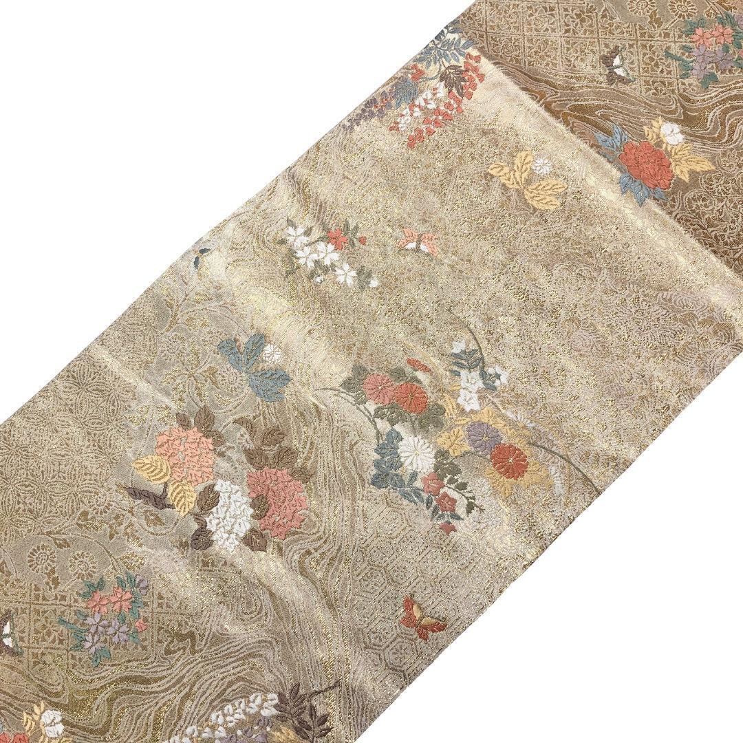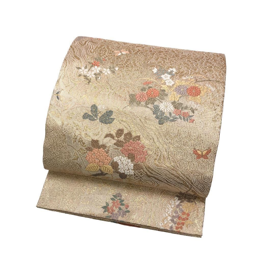 金色ベースのお色味に四季の上品な花柄模様がデザインされた素敵なお品でございます。