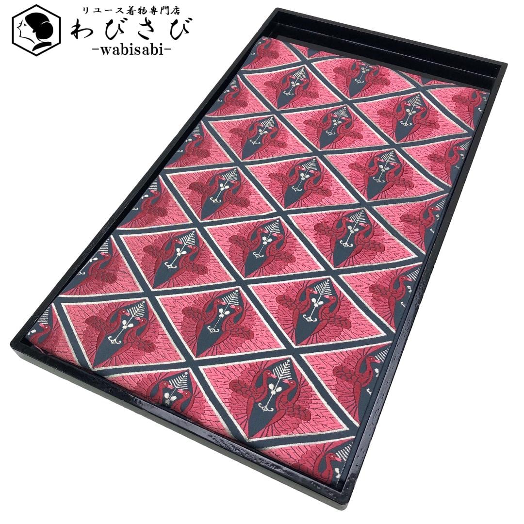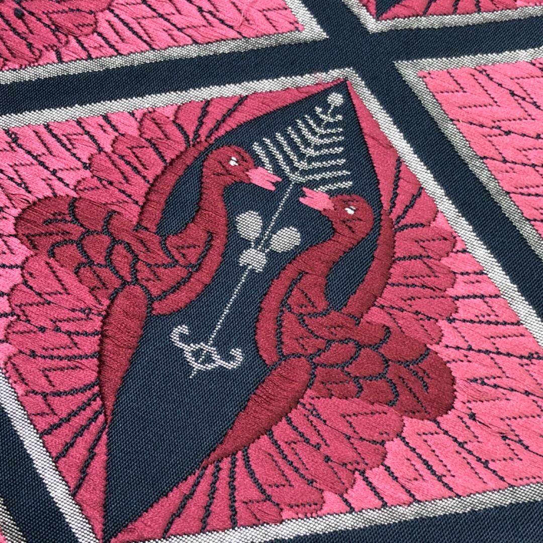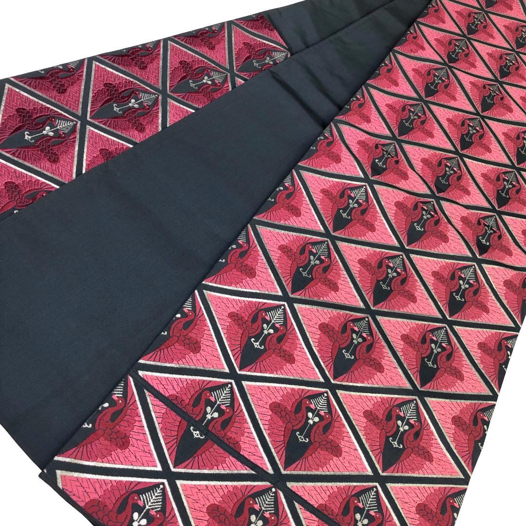 袋帯 西陣 唐織 向かい鳥菱模様 銀糸 韓藍色 O-5169 着物 きもの kimono 和服 和装 中古 リサイクル着物 【送料無料】