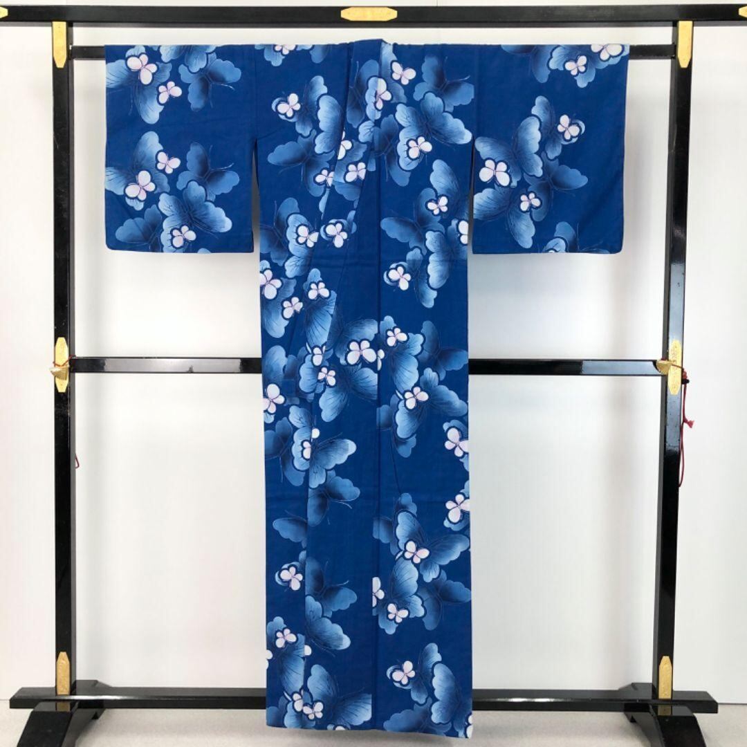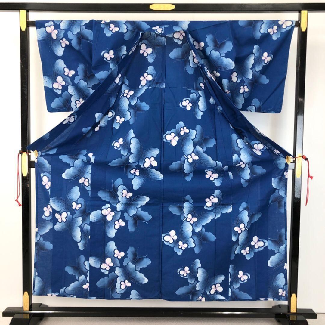 夏着物 浴衣 美しい蝶々 碧瑠璃色 K-4892 着物 きもの kimono 和服 和装 中古 リサイクル着物 【送料無料】